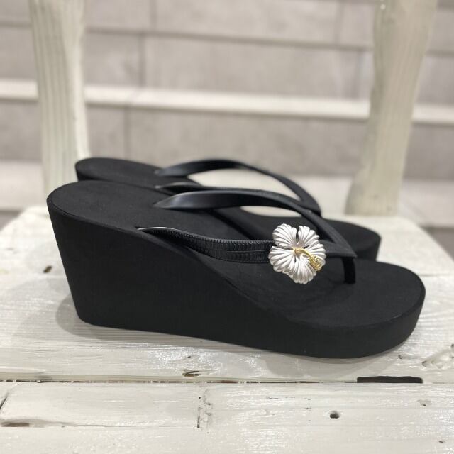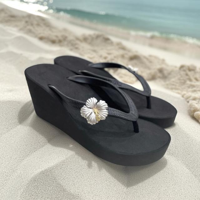 【POPITS】 ポピッツ 【ビーチサンダル】 サンダル XXS ブラック 飾り付き 花 ハイビスカス シルバー 軽量 厚底 ヒール 女性 レディース ファッション シューズ HAWAII 海外輸入 海 プレゼント