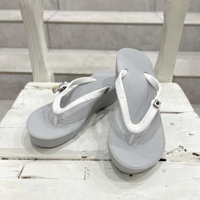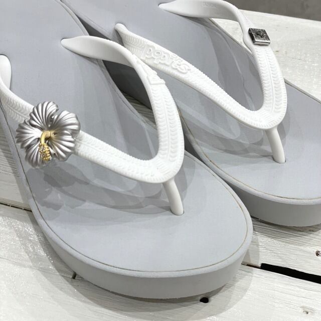 【POPITS】 ポピッツ 【ビーチサンダル】 サンダル XXS グレー 飾り付き 花 ハイビスカス シルバー 軽量 厚底 ヒール 女性 レディース ファッション シューズ HAWAII 海外輸入 海 プレゼント