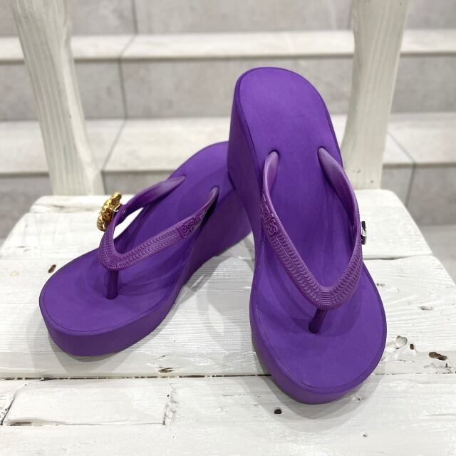 【POPITS】 ポピッツ 【ビーチサンダル】 サンダル XXS パープル 飾り付き 花 ハイビスカス ゴールド 軽量 厚底 ヒール 女性 レディース ファッション シューズ HAWAII 海外輸入 海 プレゼント