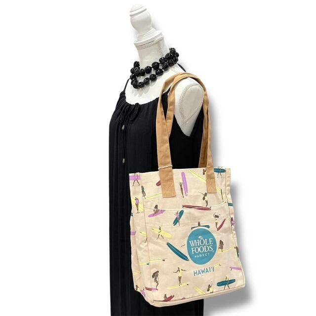 【WHOLE FOODS MARKET】HydroBag ホールフーズ トートバッグ バッグ ベージュ ブラウン ブルー サーフガール ハワイアン柄 ハワイ HAWAII ハワイ限定 プレゼント ギフト