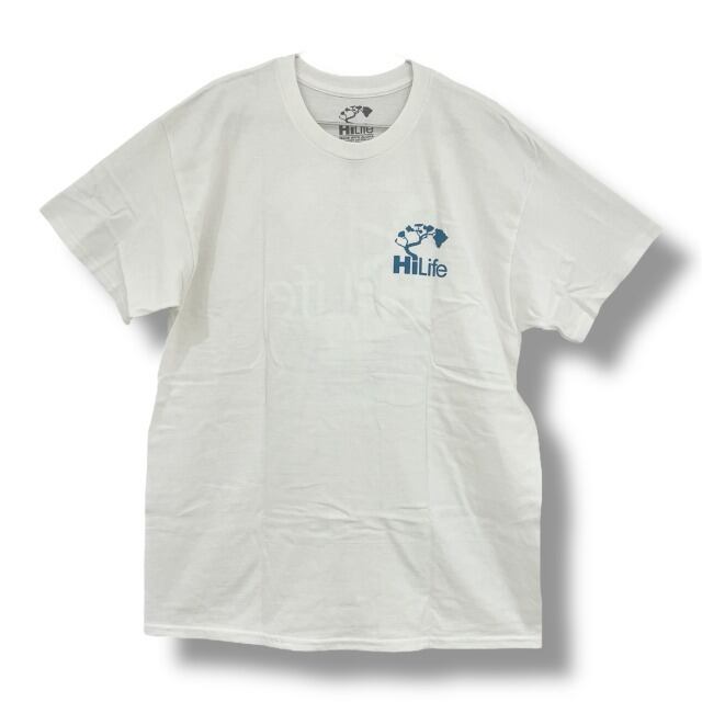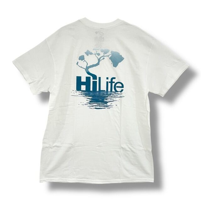 【HiLife】メンズ Tシャツ トップス L ホワイト ネイビー 半袖 ロゴ バックロゴ 海面 夏 夏物 ハワイ HAWAII 海外品 輸入 海外輸入 ローカルブランド おしゃれ ギフト