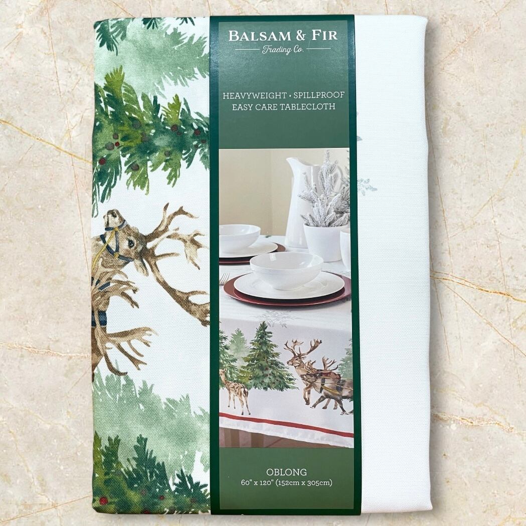 【BALSAM & FIR】【テーブルクロス】 クリスマス ツリー トナカイ サンタクロース ホワイト グリーン レッド ベージュ 結晶 雪 ダイニング プレースマット インテリア 敷物 食卓 おしゃれ 華やか 高級感 海外 海外輸入 ハワイmu