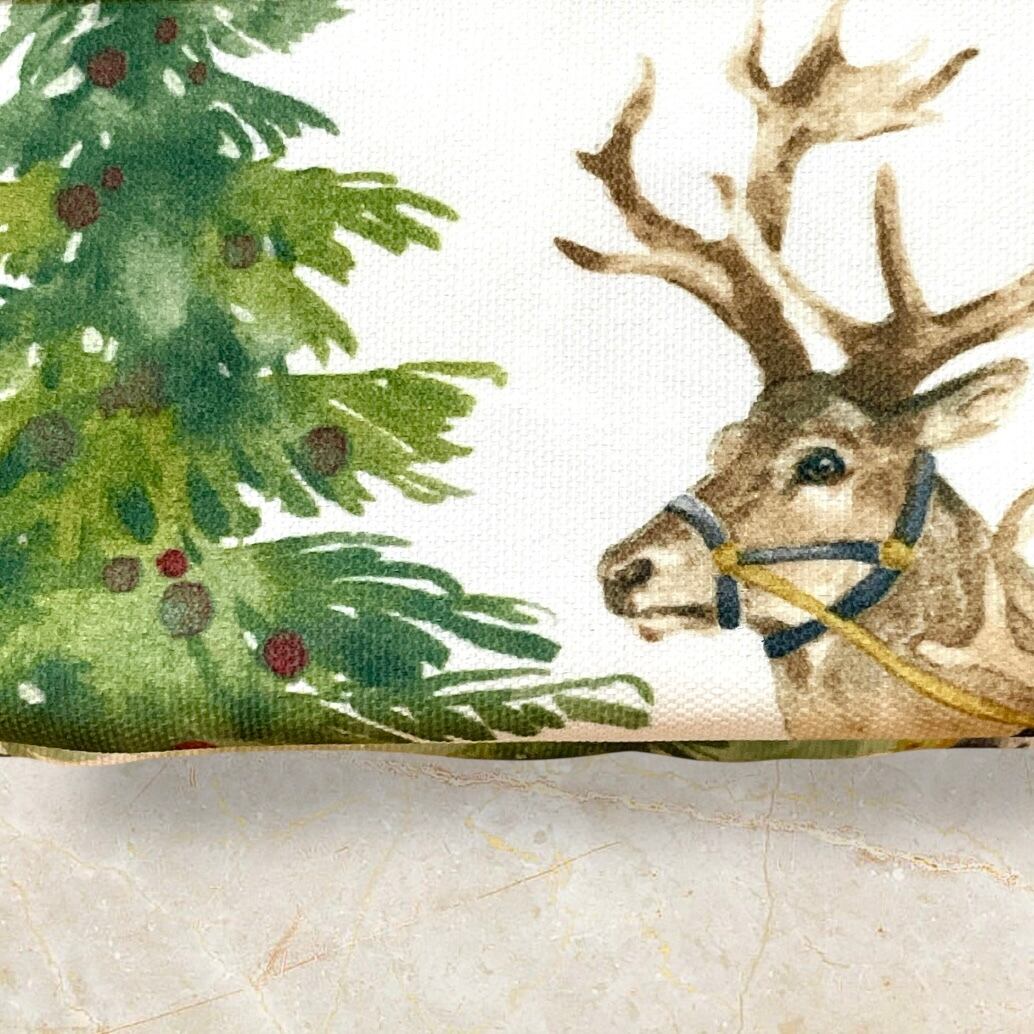 雪降る中、トナカイさんがサンタクロースをソリに乗せて走る景色が、クリスマスの華やかさや、夢を運んでくれそうなデザインです☆