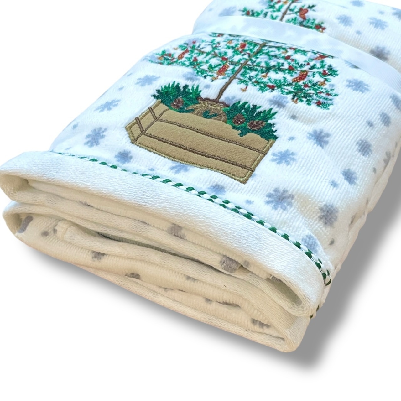 【BALSAM & FIR TRADING CO】クリスマス タオル フェイスタオル 厚手 2枚セット 2枚組 刺繍 ホワイト グレー グリーン レッド ブラウン クリスマスツリー柄 雪 クリスマスデザイン プレゼント ギフト 粗品 ハワイ 海外品 海外輸入 HAWAII mu