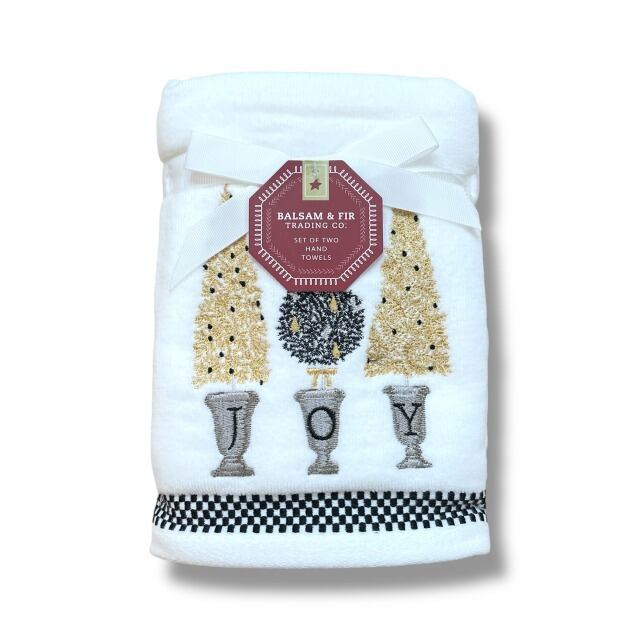 【BALSAM & FIR TRADING CO】クリスマス タオル フェイスタオル 2枚セット 2枚組 刺繍 ホワイト ゴールド ブラック グレー クリスマスデザイン プレゼント ギフト 粗品 ハワイ 海外品 海外輸入 HAWAII