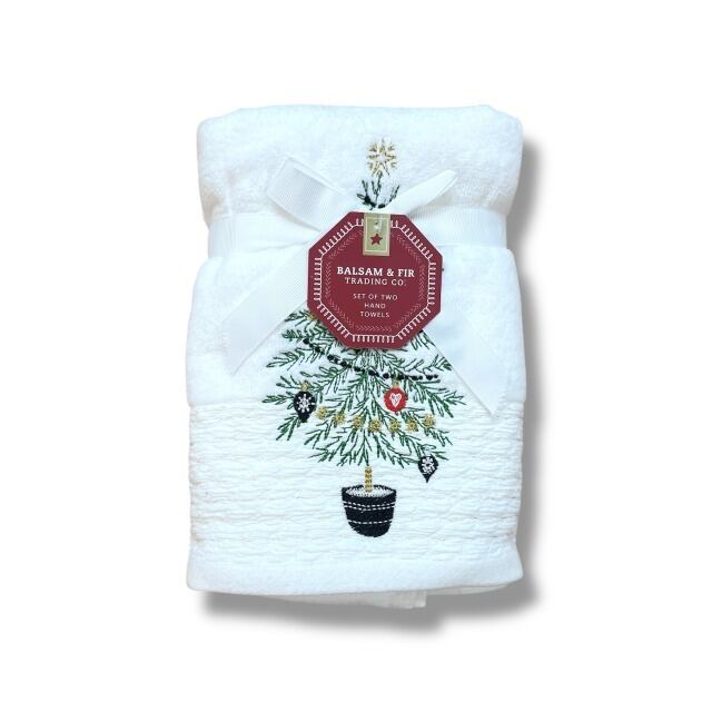 【BALSAM & FIR TRADING CO】クリスマス タオル フェイスタオル 2枚セット 2枚組 刺繍 ホワイト グリーン ゴールド レッド ブラック クリスマスデザイン クリスマスツリー プレゼント ギフト 粗品 ハワイ 海外品 海外輸入 HAWAII