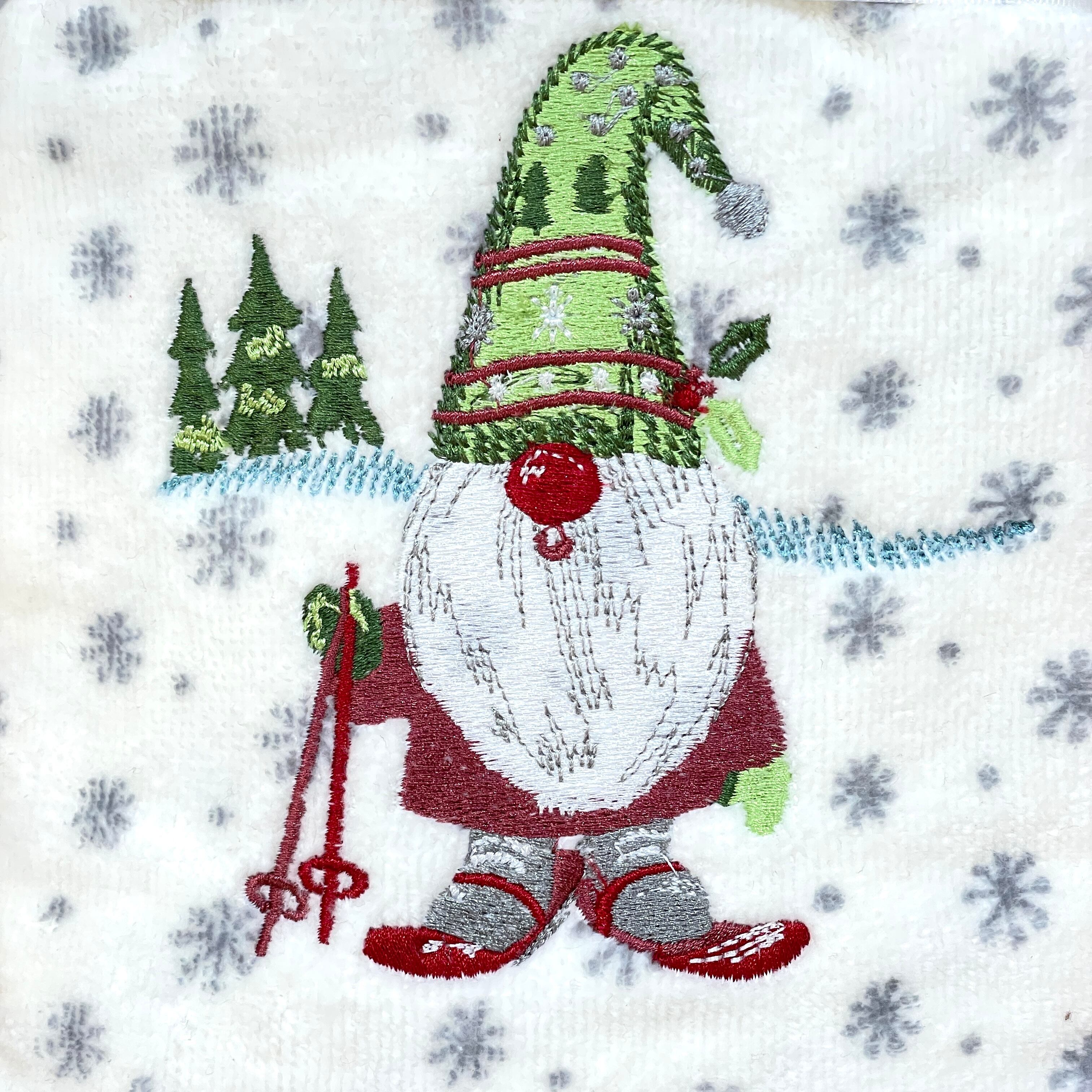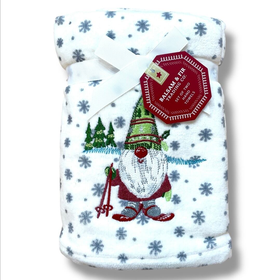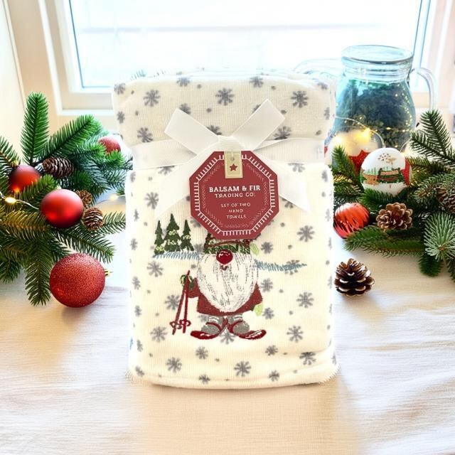 【BALSAM & FIR TRADING CO】クリスマス タオル フェイスタオル 厚手 2枚セット 2枚組 刺繍 ホワイト グレー グリーン レッド 小人 ノーム スキー ツリー 雪 クリスマスデザイン プレゼント ギフト 粗品 ハワイ 海外品 海外輸入 HAWAII mu