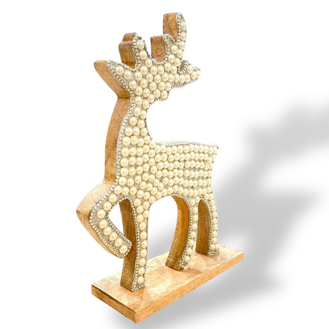 【クリスマスインテリア】クリスマス オーナメント トナカイ 木製 シルバー パール 華やか インテリア 海外輸入 輸入雑貨 クリスマスプレゼント ハワイ ハワイアン雑貨 置物 ギフト mu