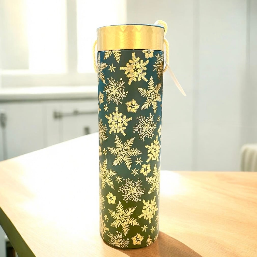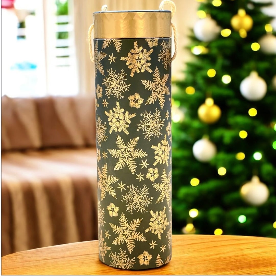 【クリスマス ボトルボックス】【Lady JAYNE】PEASE LOVE&JOY ゴールド グリーン 雪 結晶 華やか ボトル ワイン 円筒形 ギフト ギフトボックス クリスマスギフト おしゃれ プレゼント 包装 HAWAI 海外 海外旅行 海外雑貨