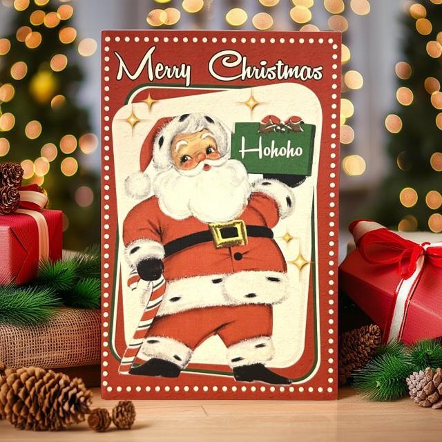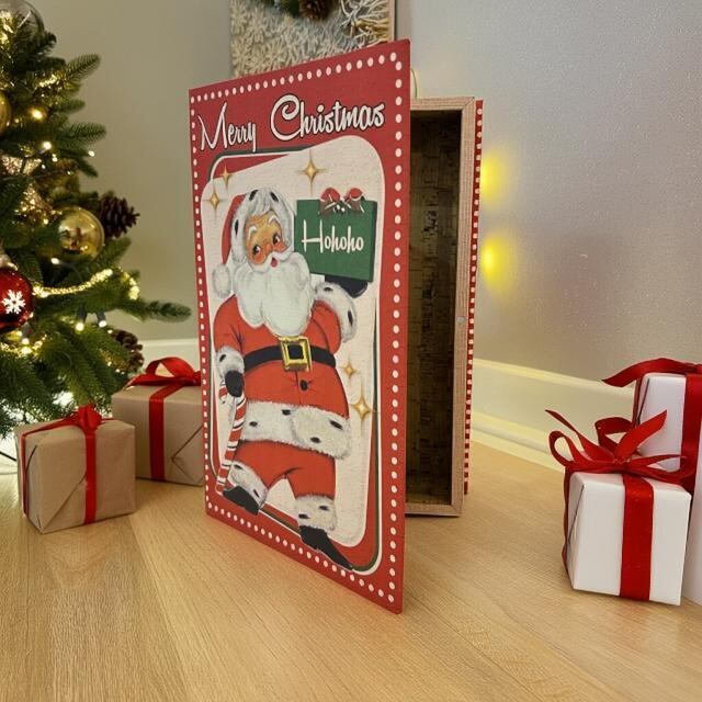 可愛いサンタクロース描かれた、本型の収納ボックスです。クリスマスデコレーションに。