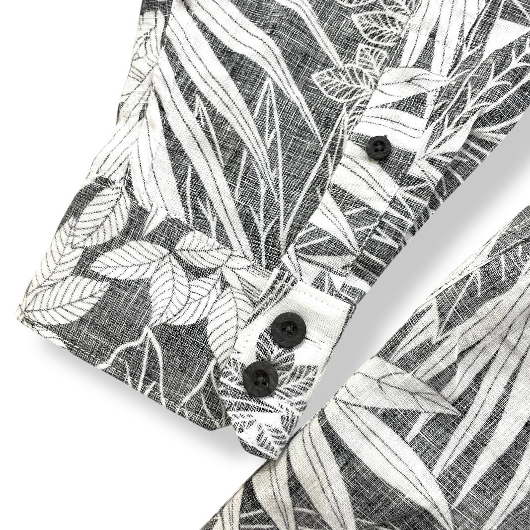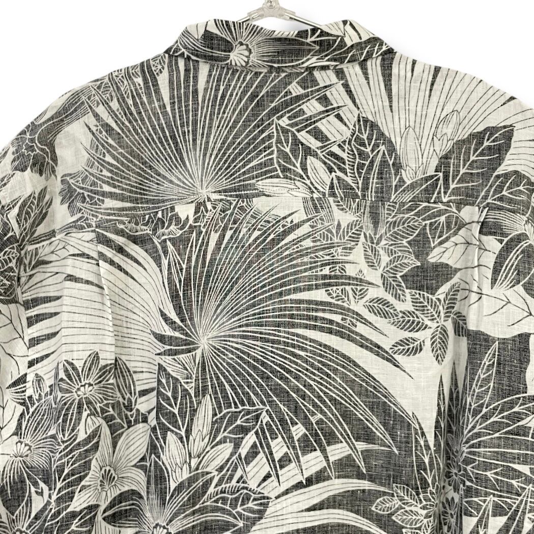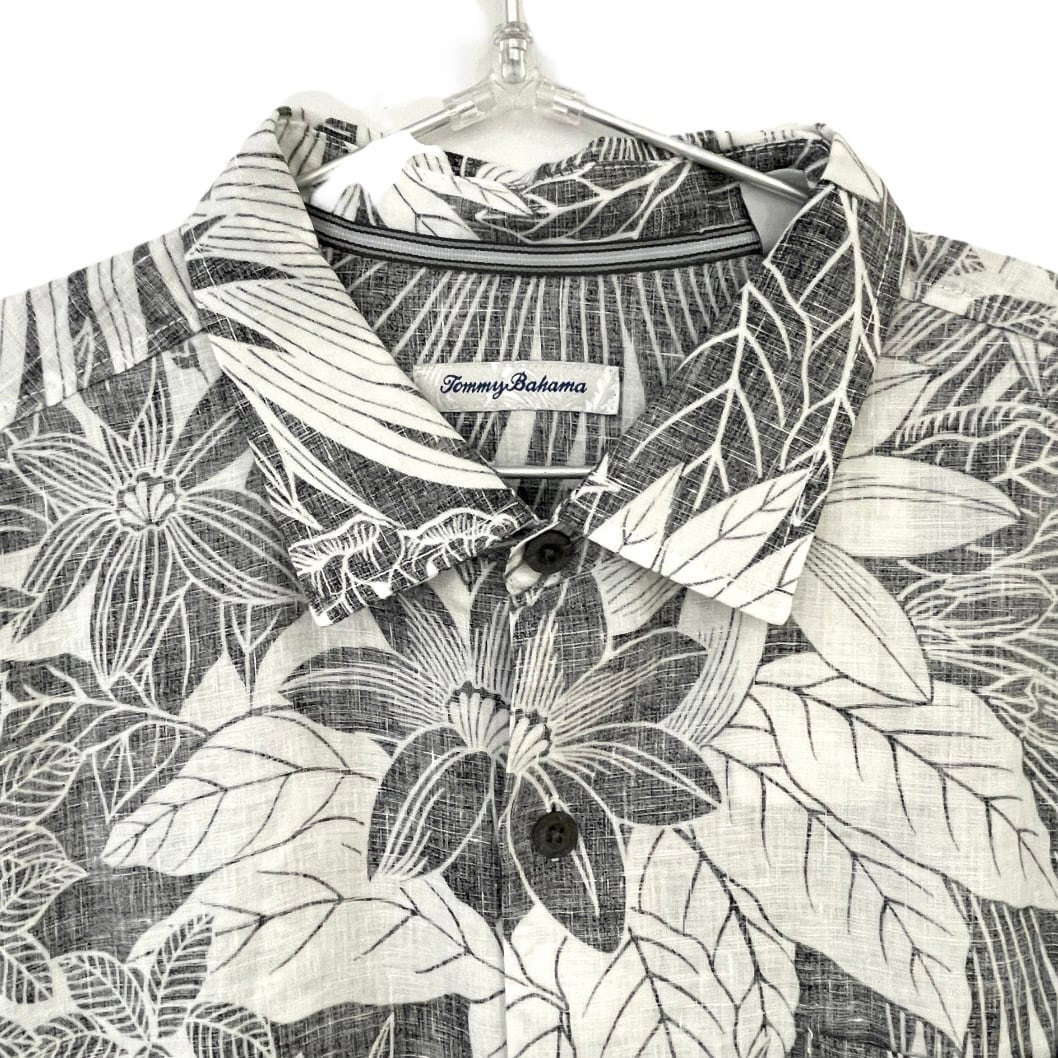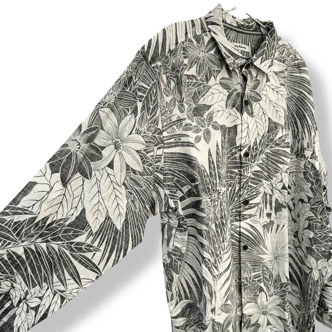 【Tommy Bahama】トミーバハマ メンズ シャツ ロングスリーブ 長袖 ブラック ホワイト お花 植物 総柄 ボタニカル トロピカル アメリカンサイズ XLサイズ ハワイアン シャツ 100%リネン 父の日 プレゼント ギフト 南国 HAWAII ハワイ mu