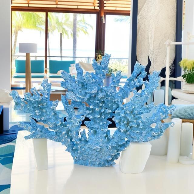 【Hawaii雑貨】【サンゴ焦】オブジェ サンゴ インテリア ブルー 海 置物 ハワイ ビーチ アロハ プレゼント 海外輸入 置き物 mu