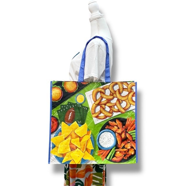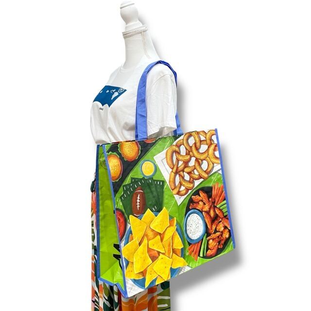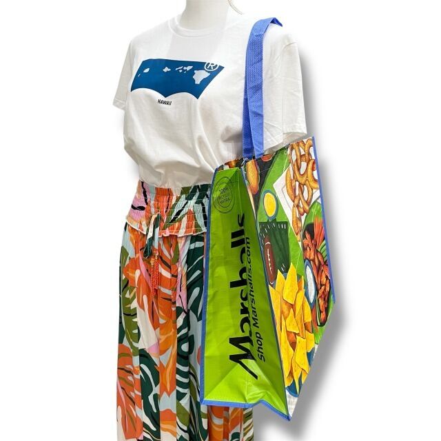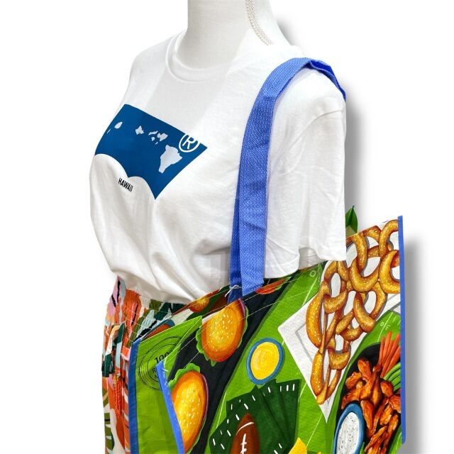 【エコバッグ】ポリプロピレン マルチカラー グリーン ブルー フード イラスト トートバッグ ショッピングバッグ マチあり ハワイ HAWAII ハワイ入荷 海外輸入 プレゼント