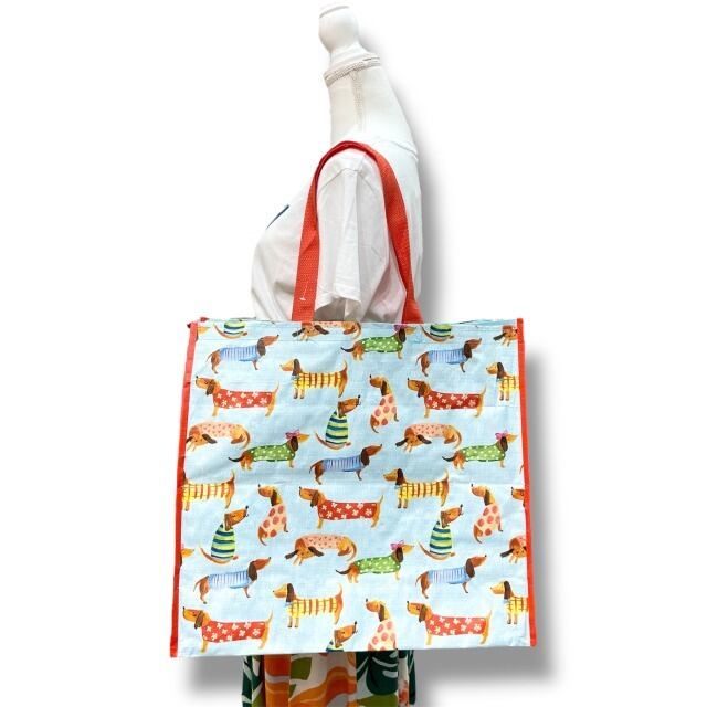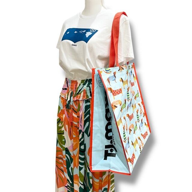 【エコバッグ】ポリプロピレン 水色 レッド 赤 マルチカラー イヌ ドッグ イラスト ポップ トートバッグ ショッピングバッグ マチあり ハワイ HAWAII ハワイ入荷 海外輸入 プレゼント