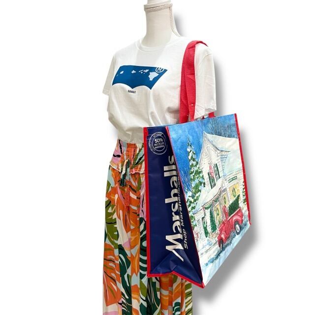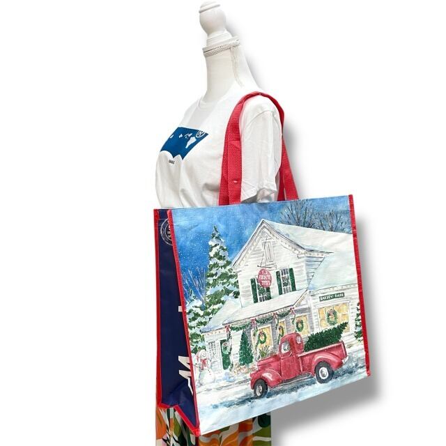 【エコバッグ】ポリプロピレン レッド 赤 ブルー 青 マルチカラー クリスマス イラスト ポップ トートバッグ ショッピングバッグ マチあり ハワイ HAWAII ハワイ入荷 海外輸入 プレゼント