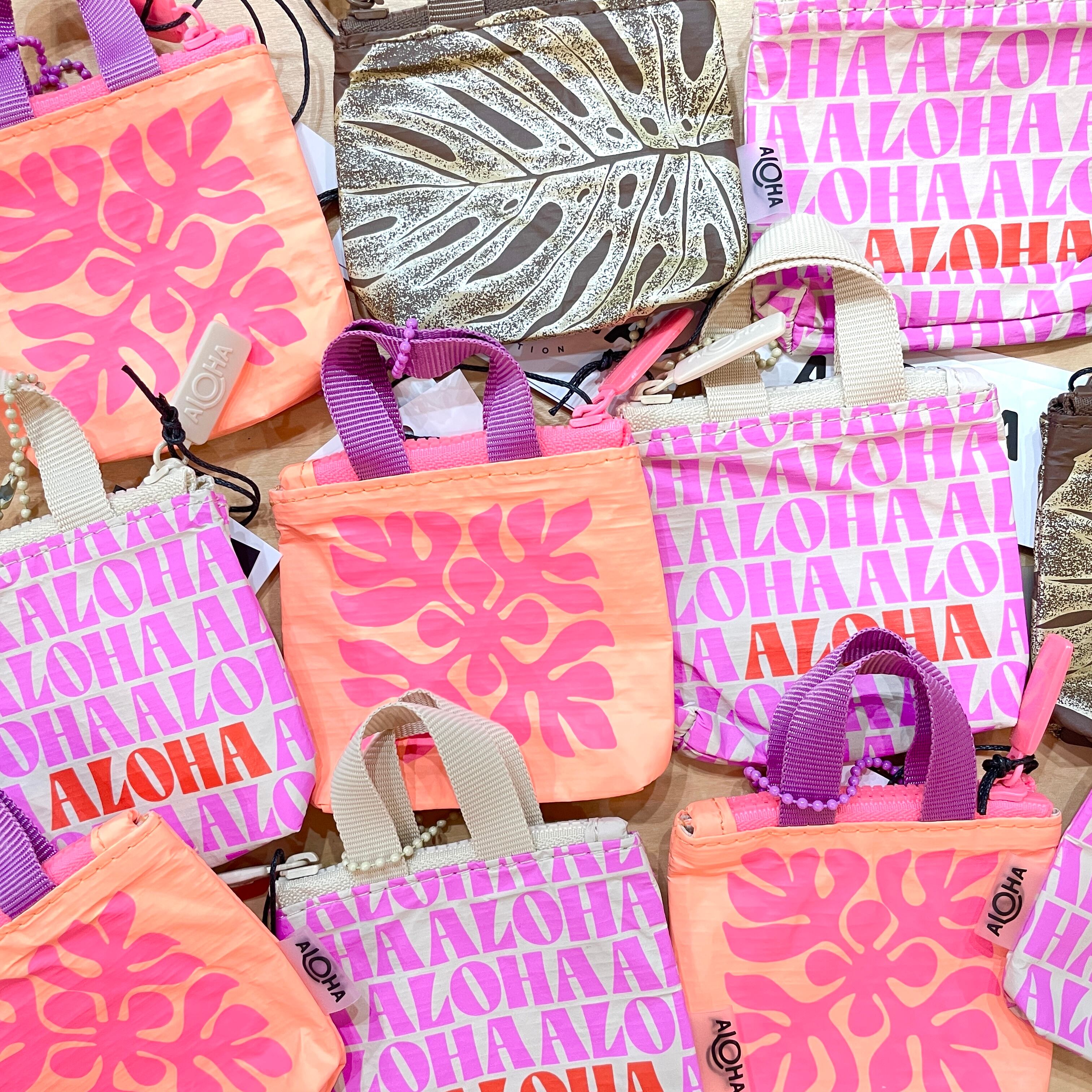 【ALOHA COLLECTION】アロハコレクション タイニートリッパー チャーム ミニトート ミニチュア ベージュ ピンク オレンジ ALOHA ロゴ アクセサリー 鍵入れ 海 プール ビーチ 撥水 ハワイ プレゼント 【KOBE三宮 PuaHawaii】mu