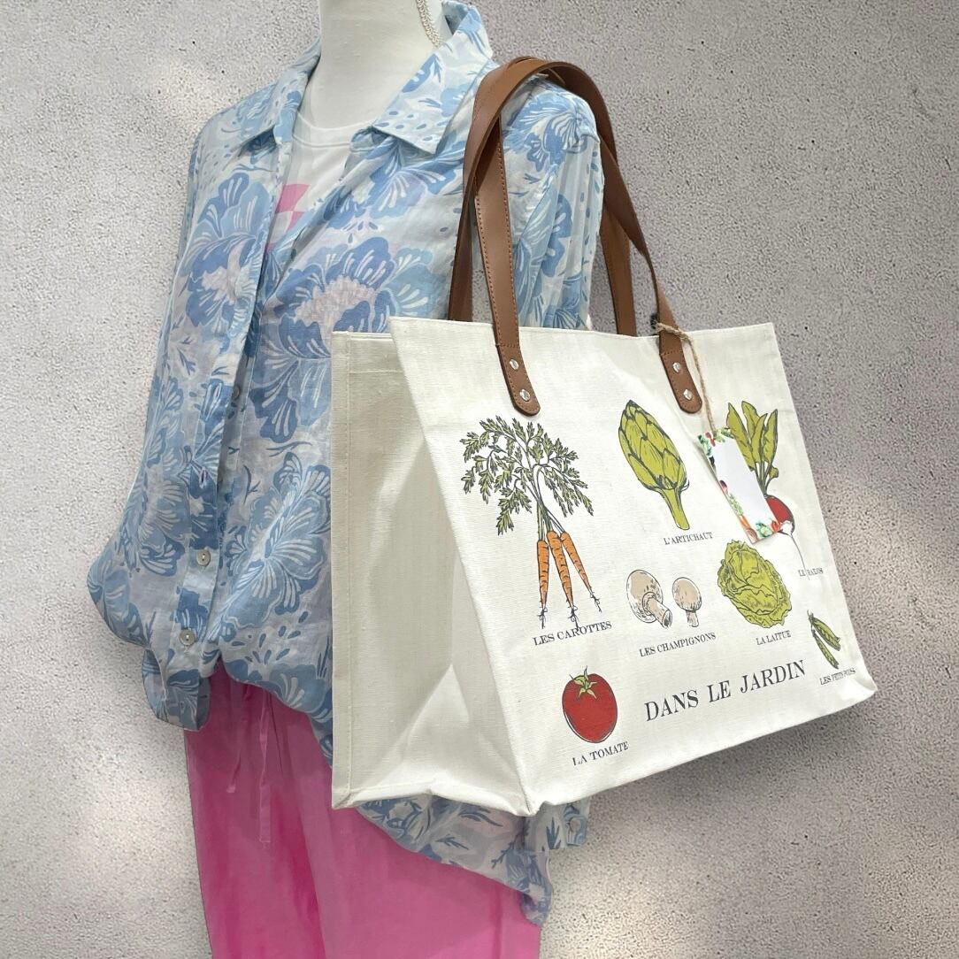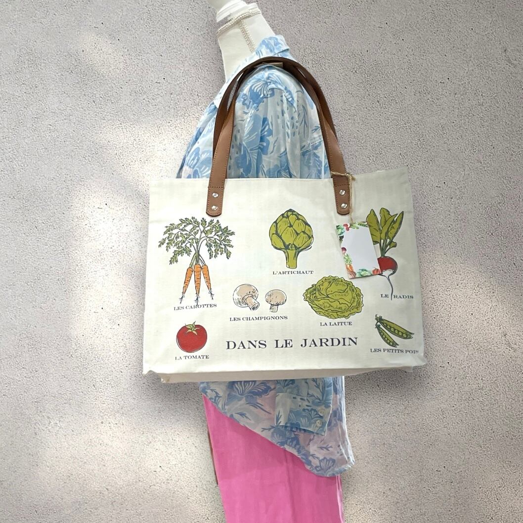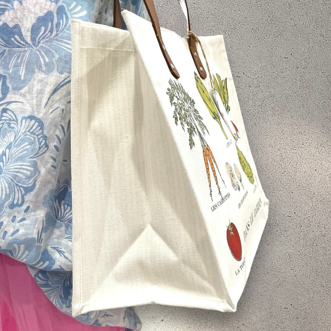 【送料無料】【tote bag】スクエア トートバッグ ショッピングバッグ コットン グリーン ベジタブル柄 野菜柄 マチあり 海外品 輸入 海外輸入 ハワイ HAWAII インポート プレゼント mu