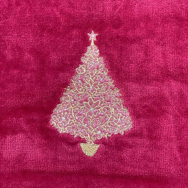【BELL SOFT】 クリスマス タオル バスタオル レッド ゴールド 刺繍 クリスマスツリー クリスマスデザイン プレゼント ギフト 粗品 ハワイ 海外品 海外輸入 HAWAII