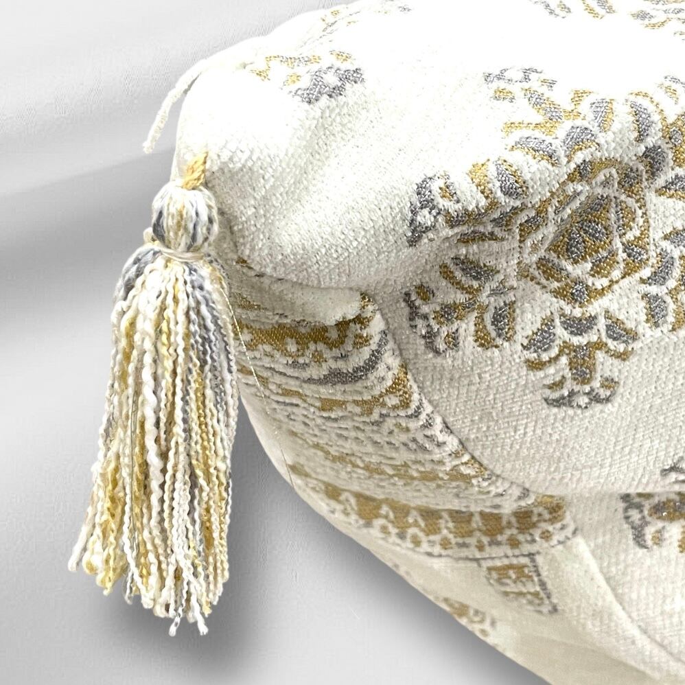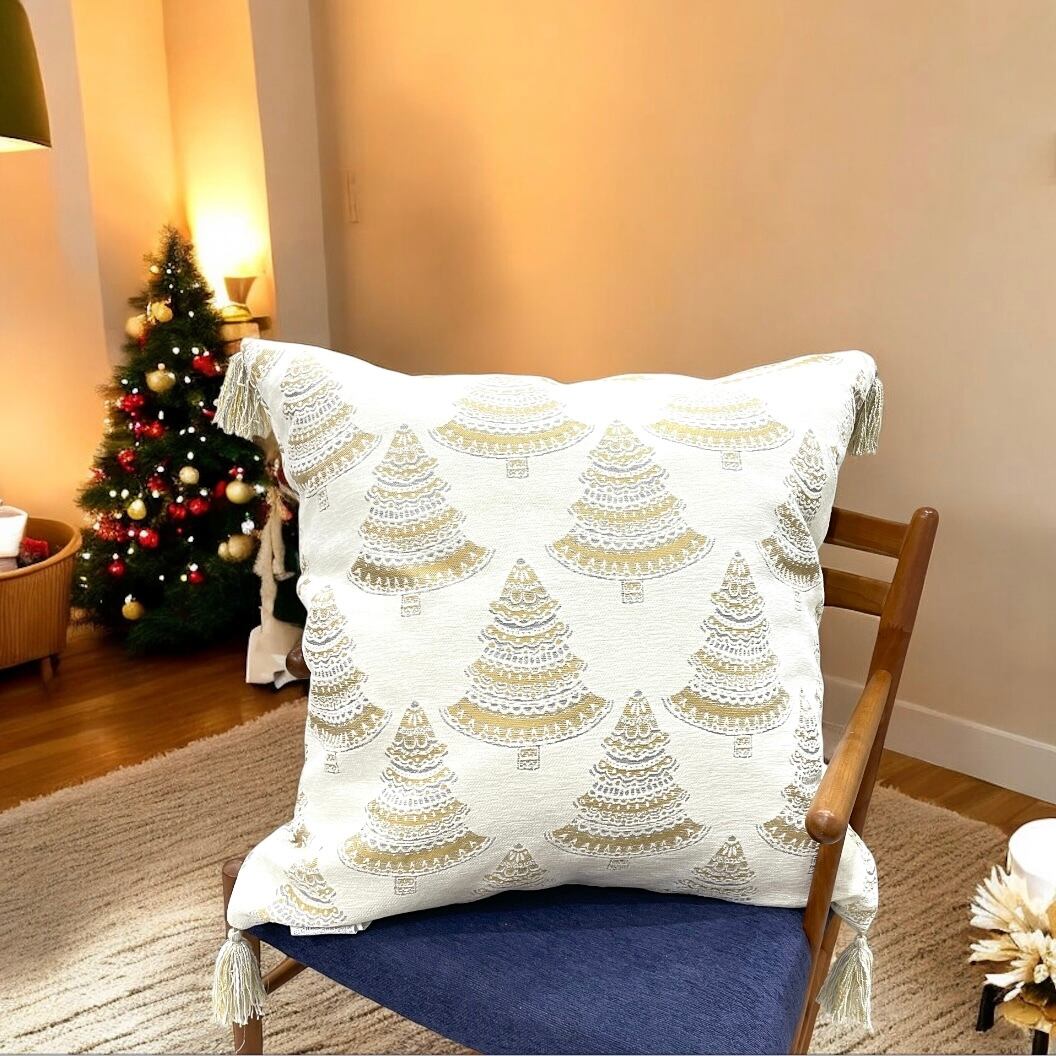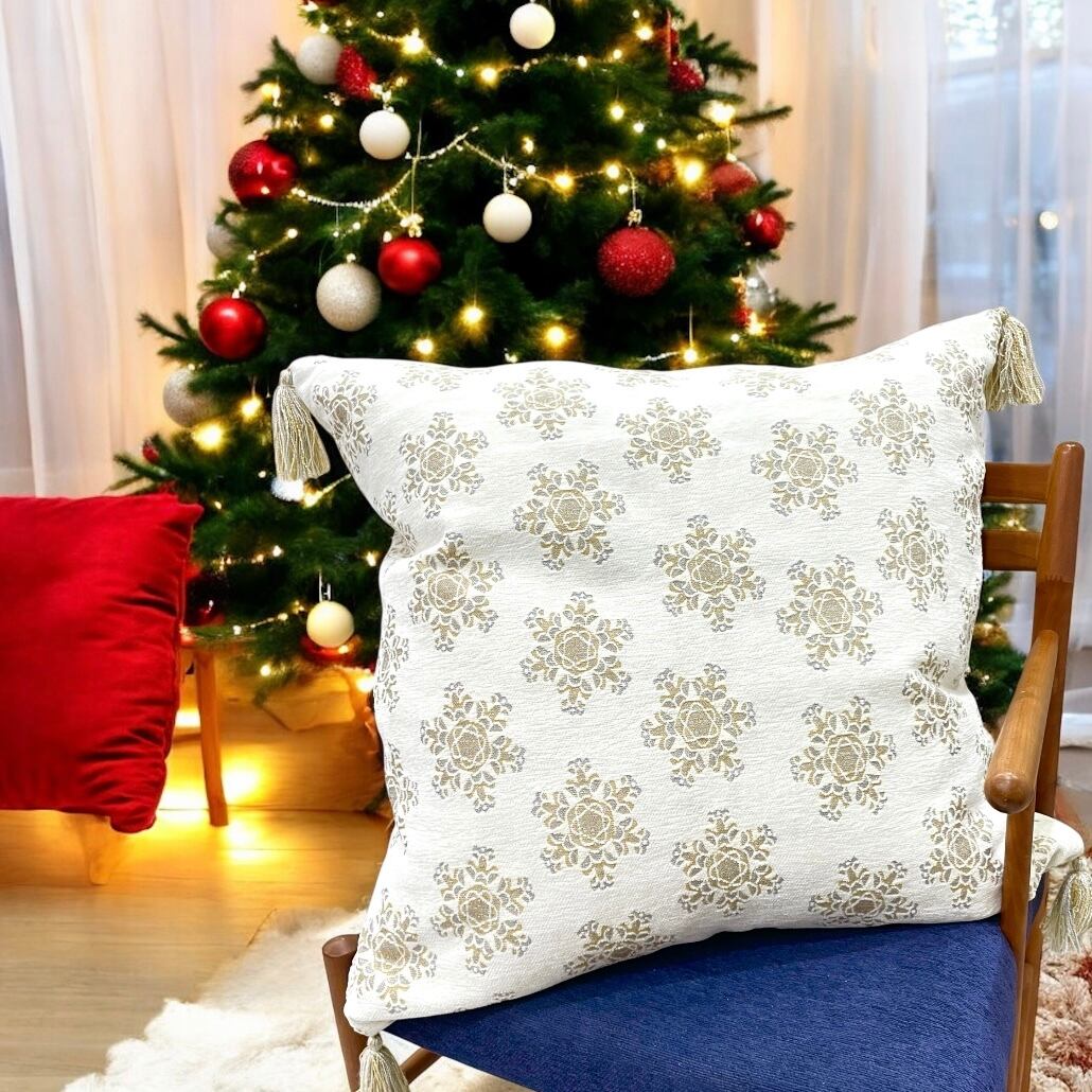【クッション】【425SOUTH】【クリスマス】BIGサイズ クリスマスツリー 結晶 刺繍 タッセル付き ゴールド ベージュ シルバーグレー 生成り 中身付き 羽毛 ポリエステル 豪華 海外 Hawaii インテリア プレゼント【KOBE三宮 PuaHawai】mu