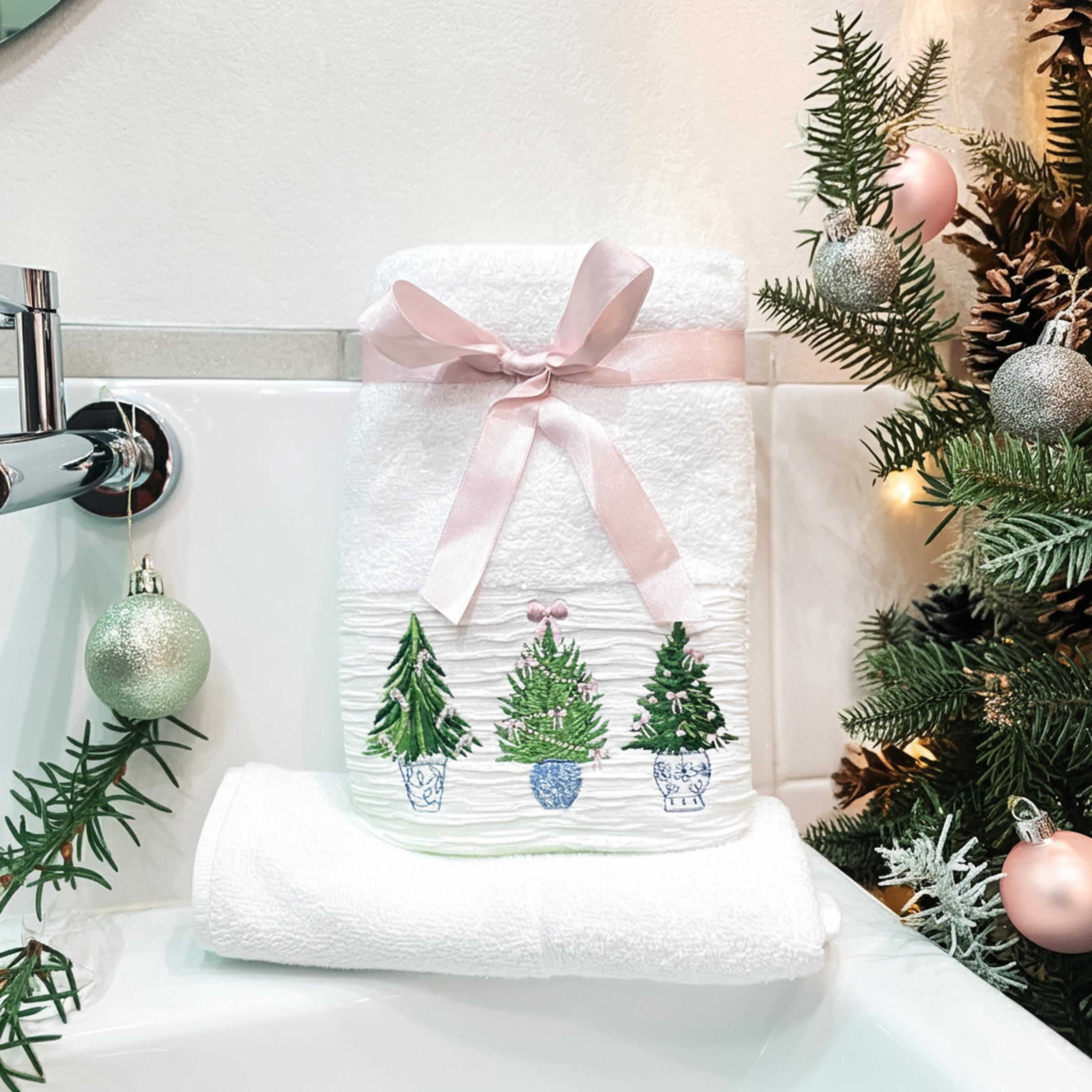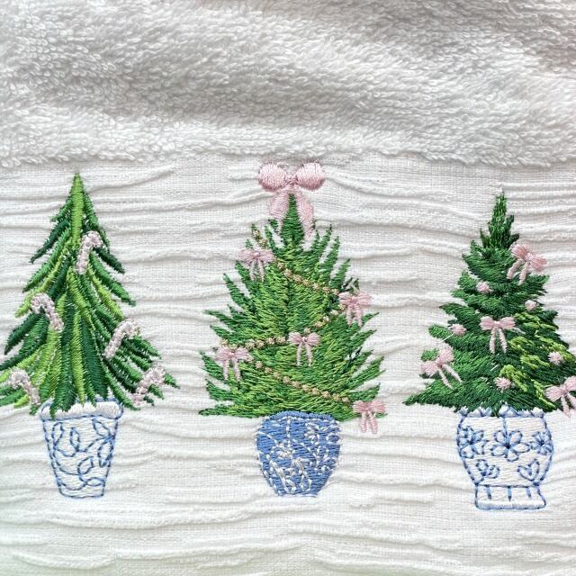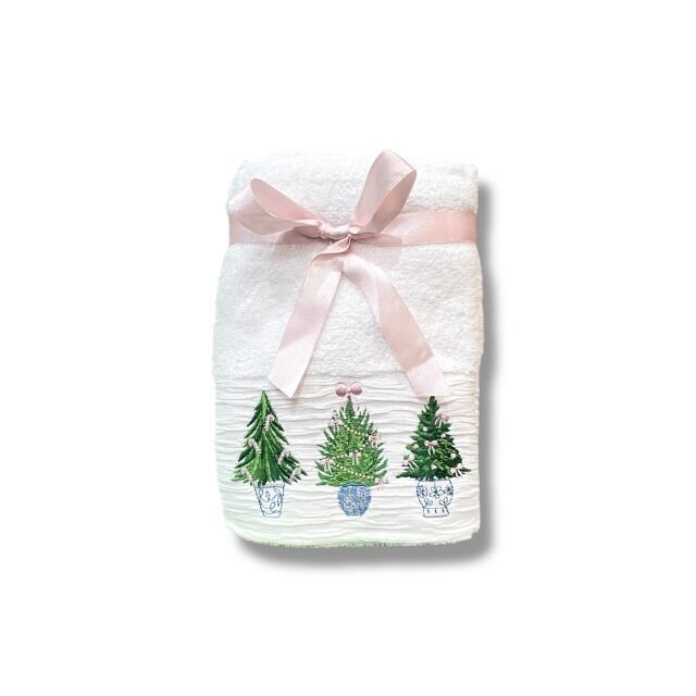 【ARCTIC HOLIDAY】クリスマス タオル フェイスタオル 2枚セット 2枚組 ホワイト ピンク グリーン キラキラ 刺繍 クリスマスデザイン クリスマスツリー プレゼント ギフト 粗品 ハワイ 海外品 海外輸入 HAWAII