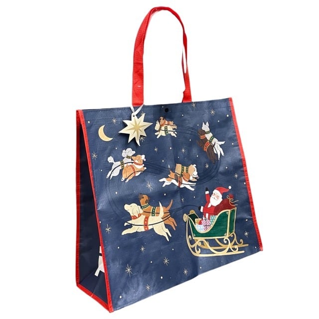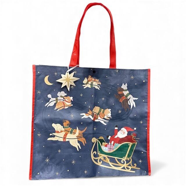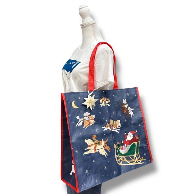 【エコバッグ】ポリプロピレン ネイビー レッド サンタクロース クリスマス ドッグ イラスト エコトートバッグ ショッピングバッグ マチあり ハワイ HAWAII ハワイ入荷 海外輸入 プレゼント