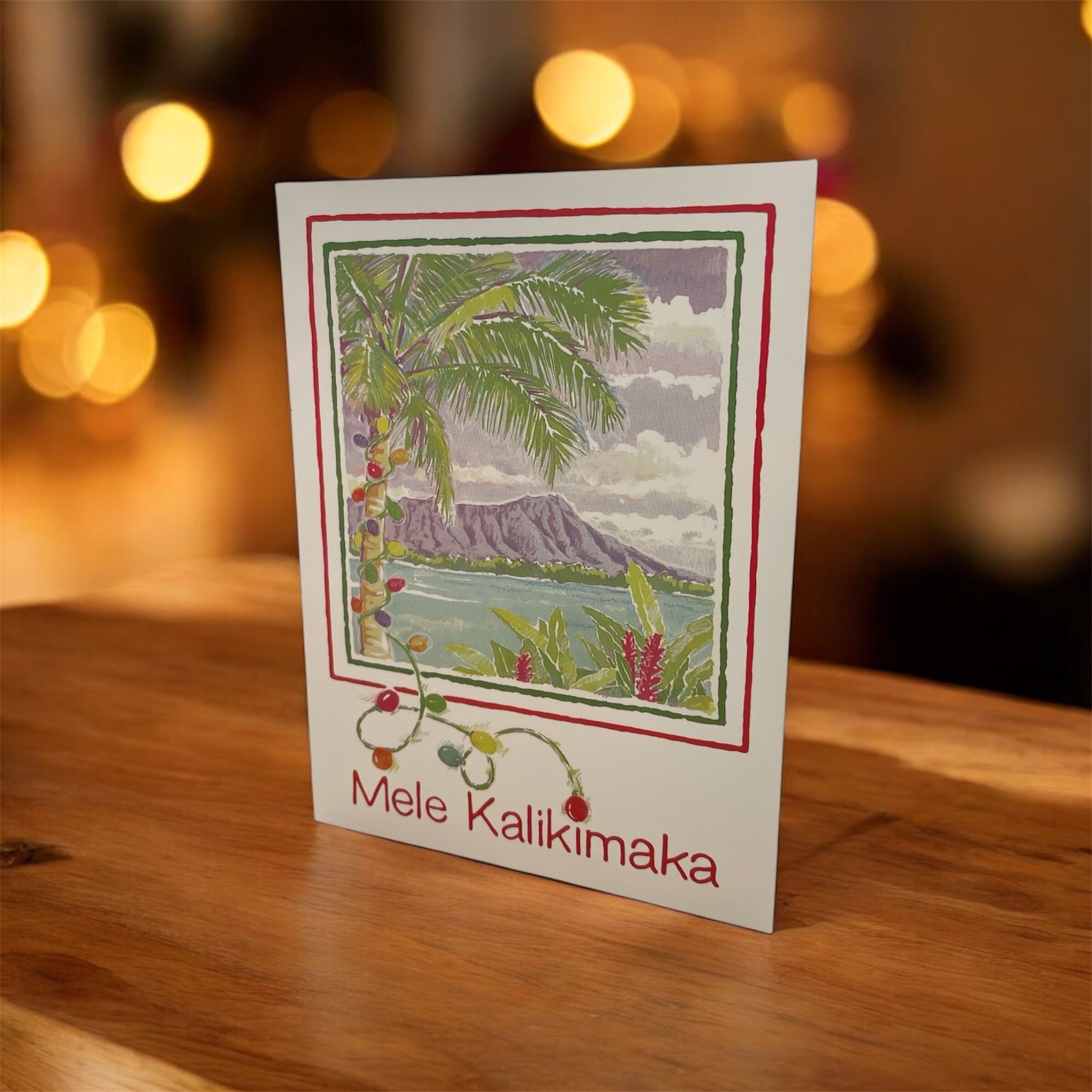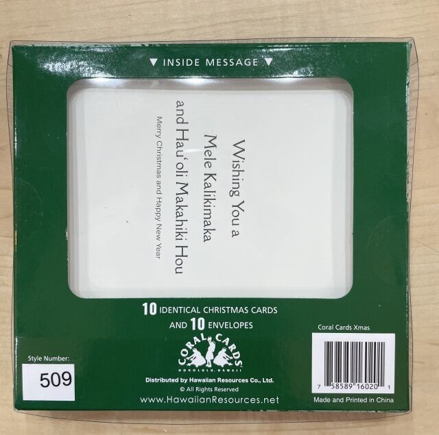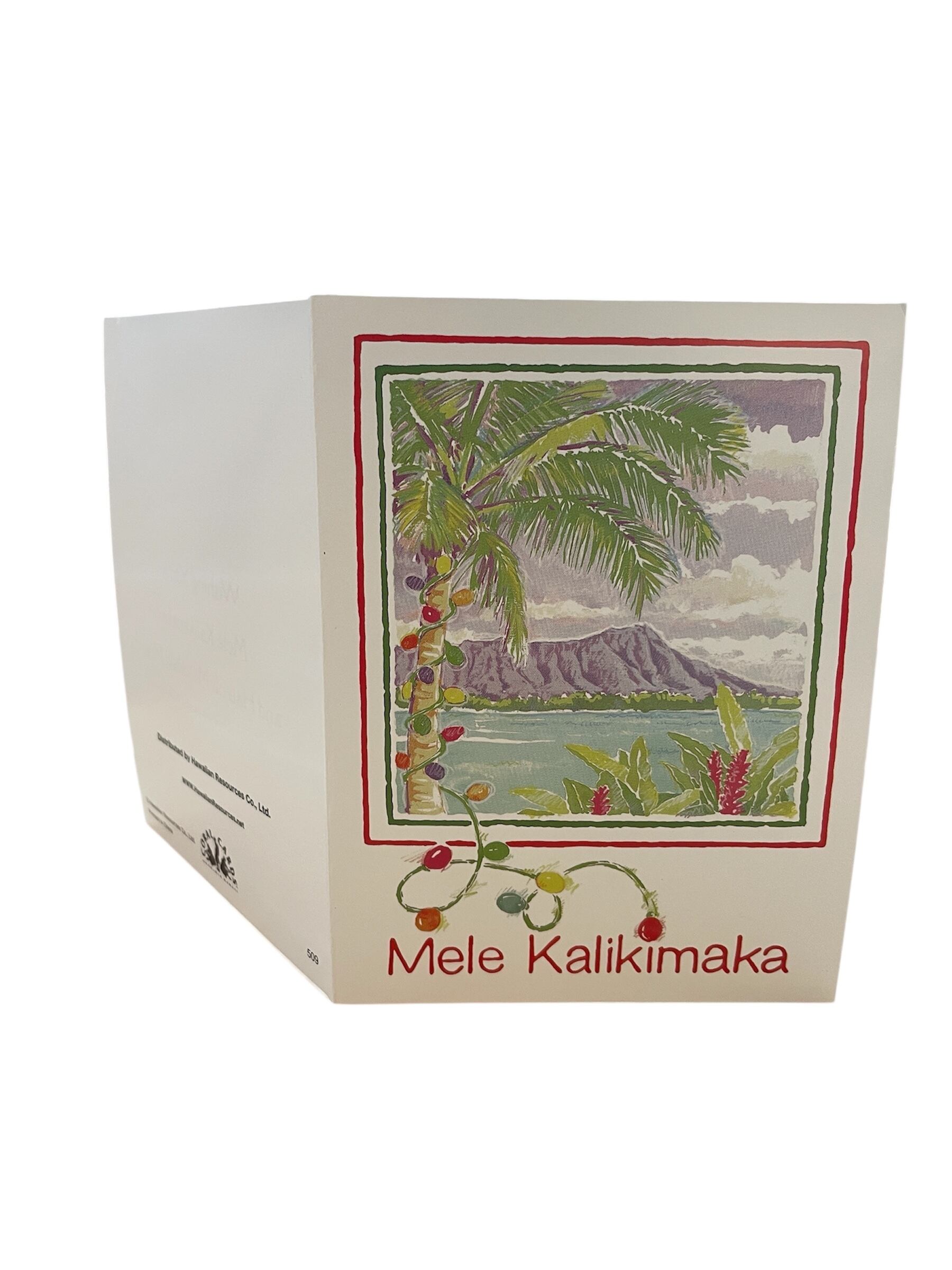 中のメッセージ:Wishing you a Mele Kalikimaka and Hau'oli Makahiki Hou br> Merry Christmas and Happy New Year