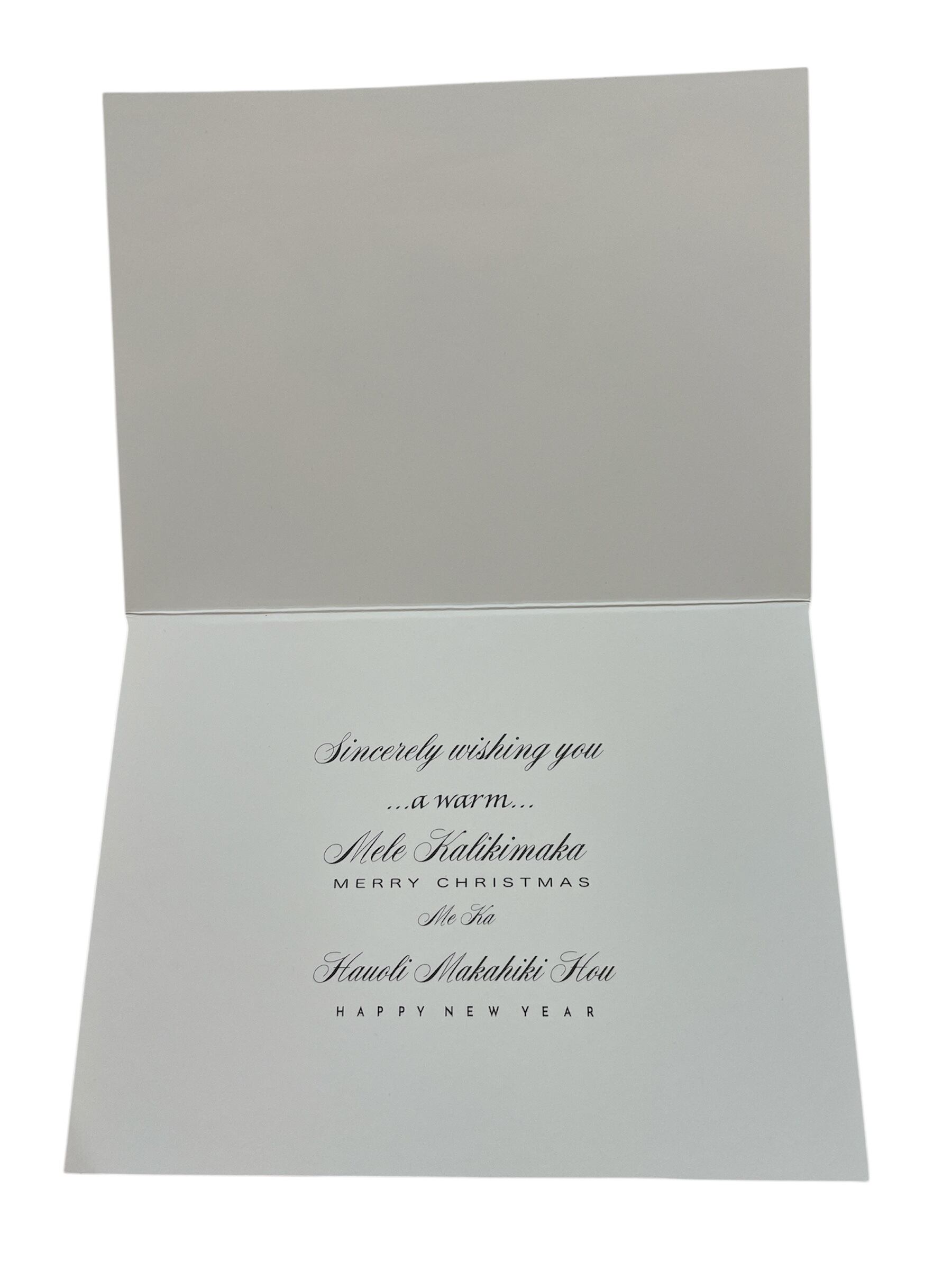 中のメッセージ:Sincerely wishing you... a warm... Mele Kalikimaka MERRY CHRISTMAS
