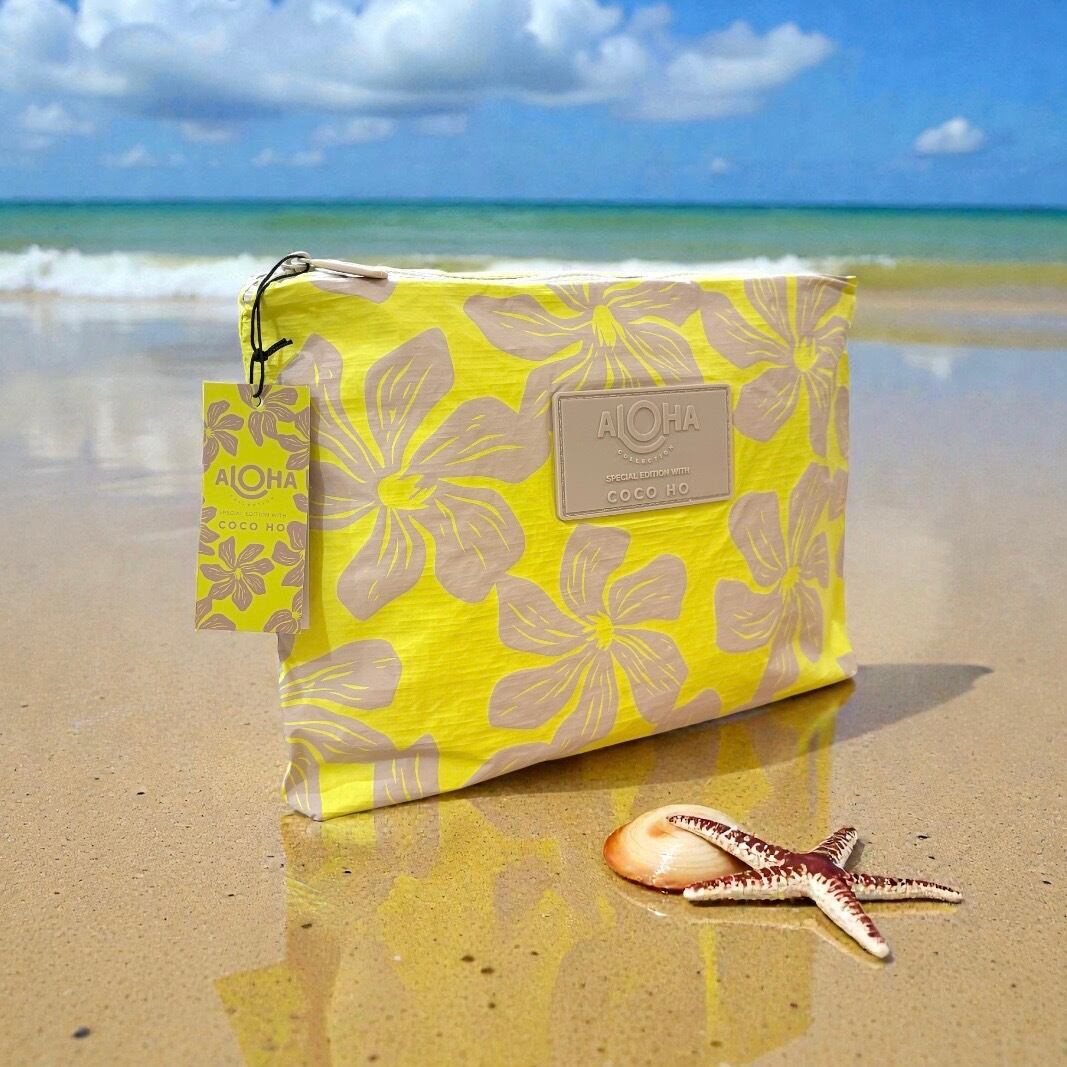 【送料無料】【ALOHA COLLECTION】アロハコレクション MIDポーチ COCO HO コラボレーション ノースショアー プロサーファー ティアレ ALOHA ベージュ イェロー ロゴ 海 プール ビーチ 撥水 ハワイ プレゼント ファスナー 【KOBE三宮 PuaHawaii】mu