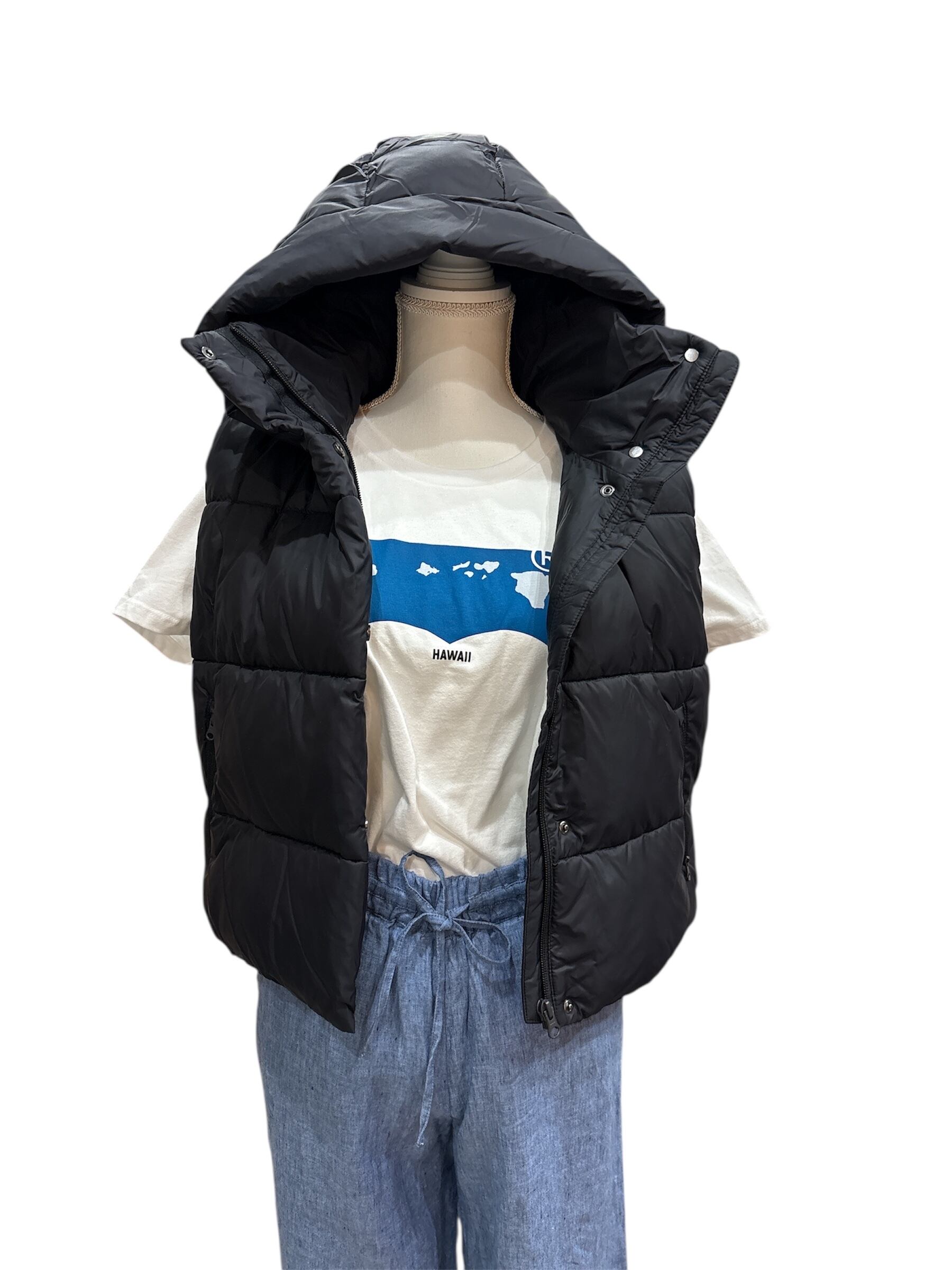 【送料無料】【alo】【GOLD RUSH PUFFER VEST】パファー ベスト ダウン アロー 裾絞り フード付き 襟高め 内ポケット 保温 カジュアル 冬 ふっくらデザイン 保温 暖かい 黒 ブラック ヨガ ヨガブランド 海外輸入 海外品 プレゼント ギフト ka