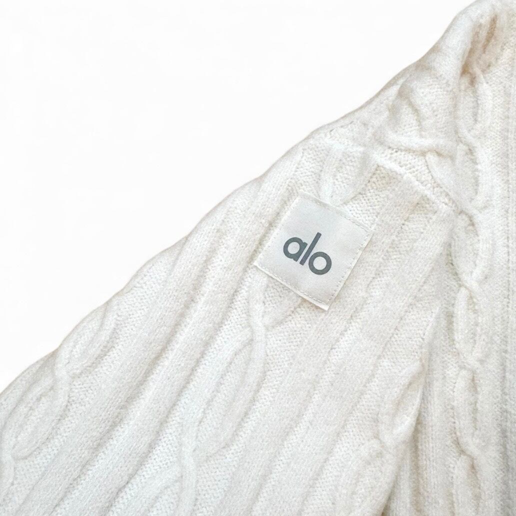 【送料無料】【alo】【Cable Knit Winter Bliss Hdie】ケーブルニット フーディー アロー ホワイト ドロップ丈 短め ふっくら ふわふわ ロゴ 保温 暖かい 白 ヨガ ヨガブランド Hawaii 海外輸入 海外品 プレゼント ギフト mu