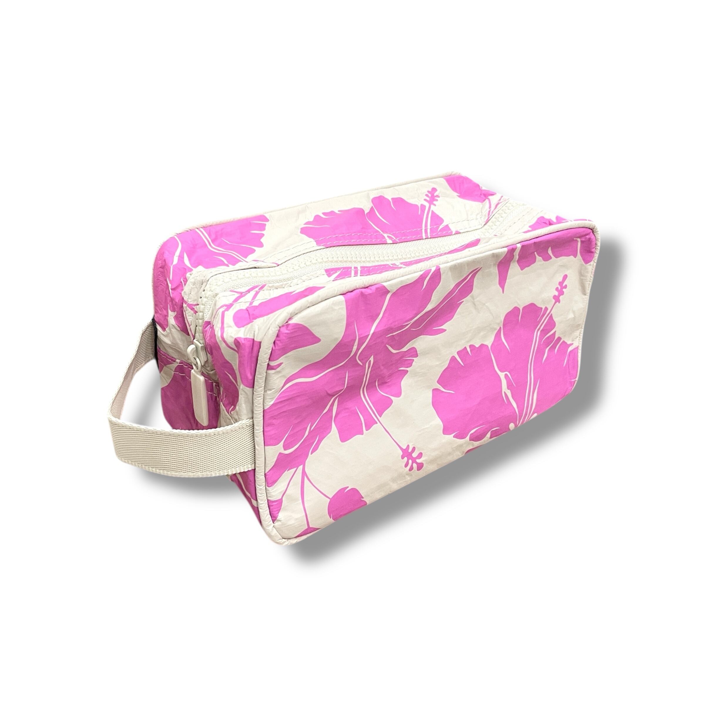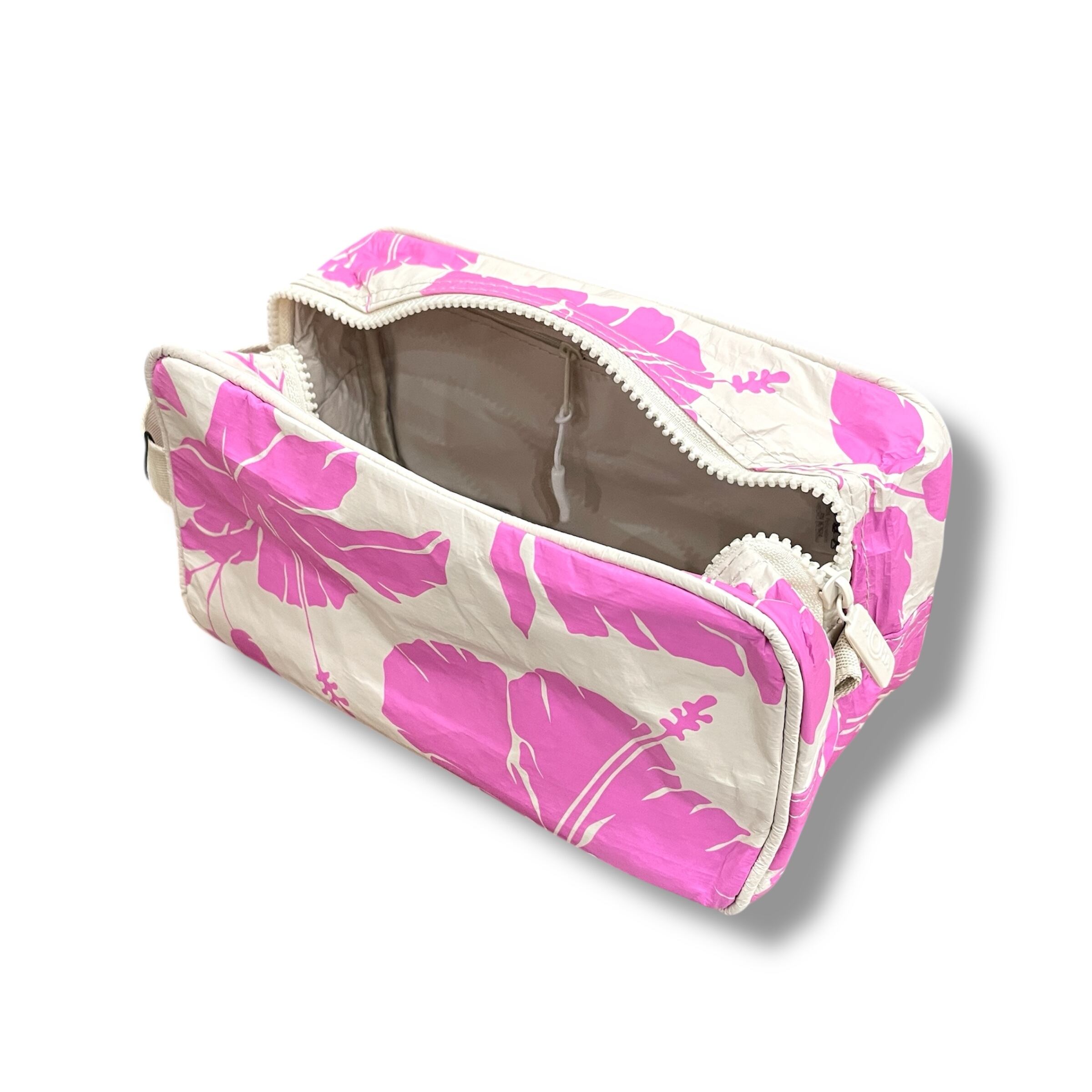 【ALOHA COLLECTION】アロハコレクション ポーチ DOPP KIT ファスナー ピンク ベージュ ハイビスカス ハワイアン柄 南国 海 プール ビーチ 撥水 ハワイ プレゼント