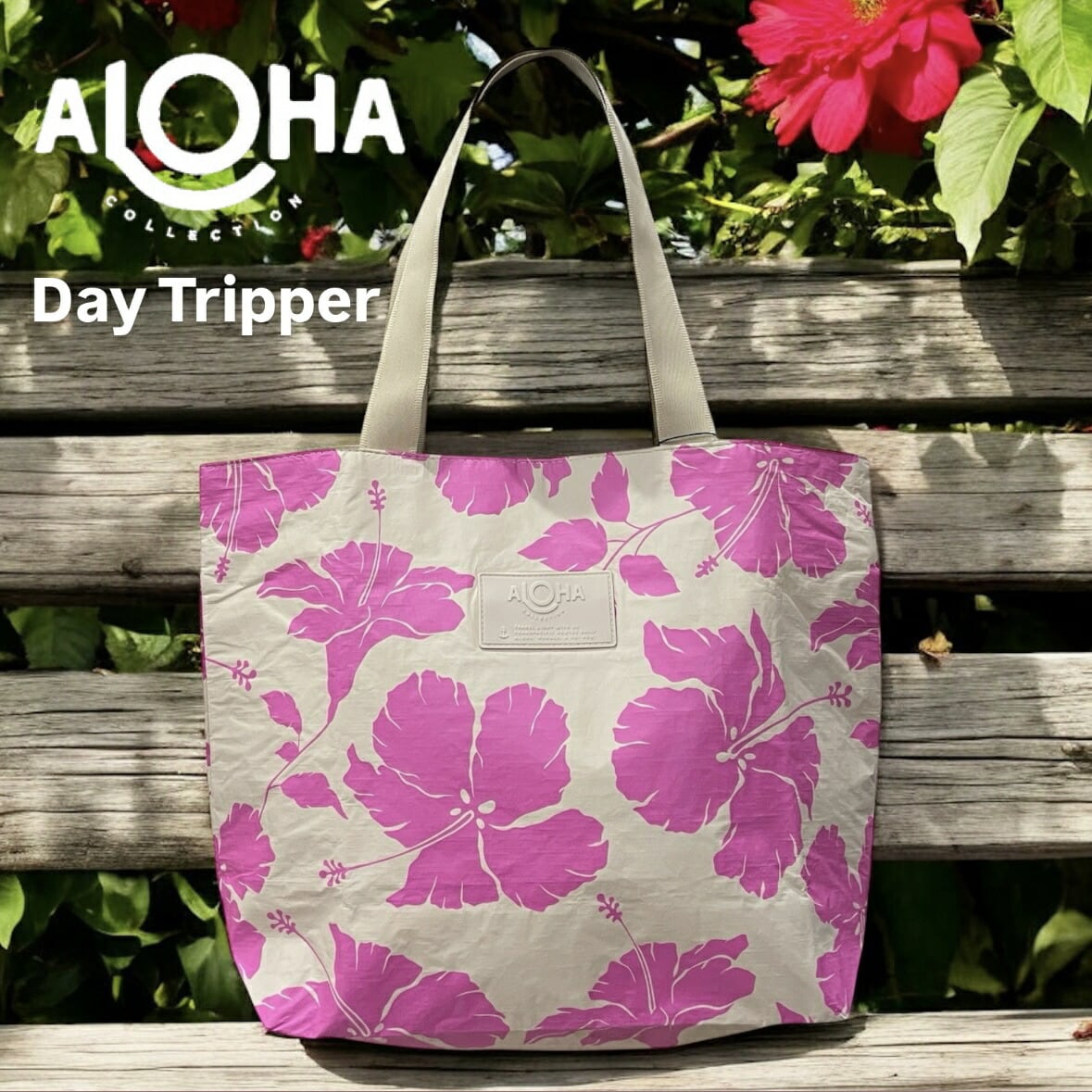 【ALOHA COLLECTION】 DayTripper トート バッグ ハイビスカス ファスナー ピンク ベージュ 花 フラワー ハワイアン ロゴ 海 プール ビーチ 撥水 ハワイ プレゼント 送料無料 神戸三宮 PUA HAWAII
