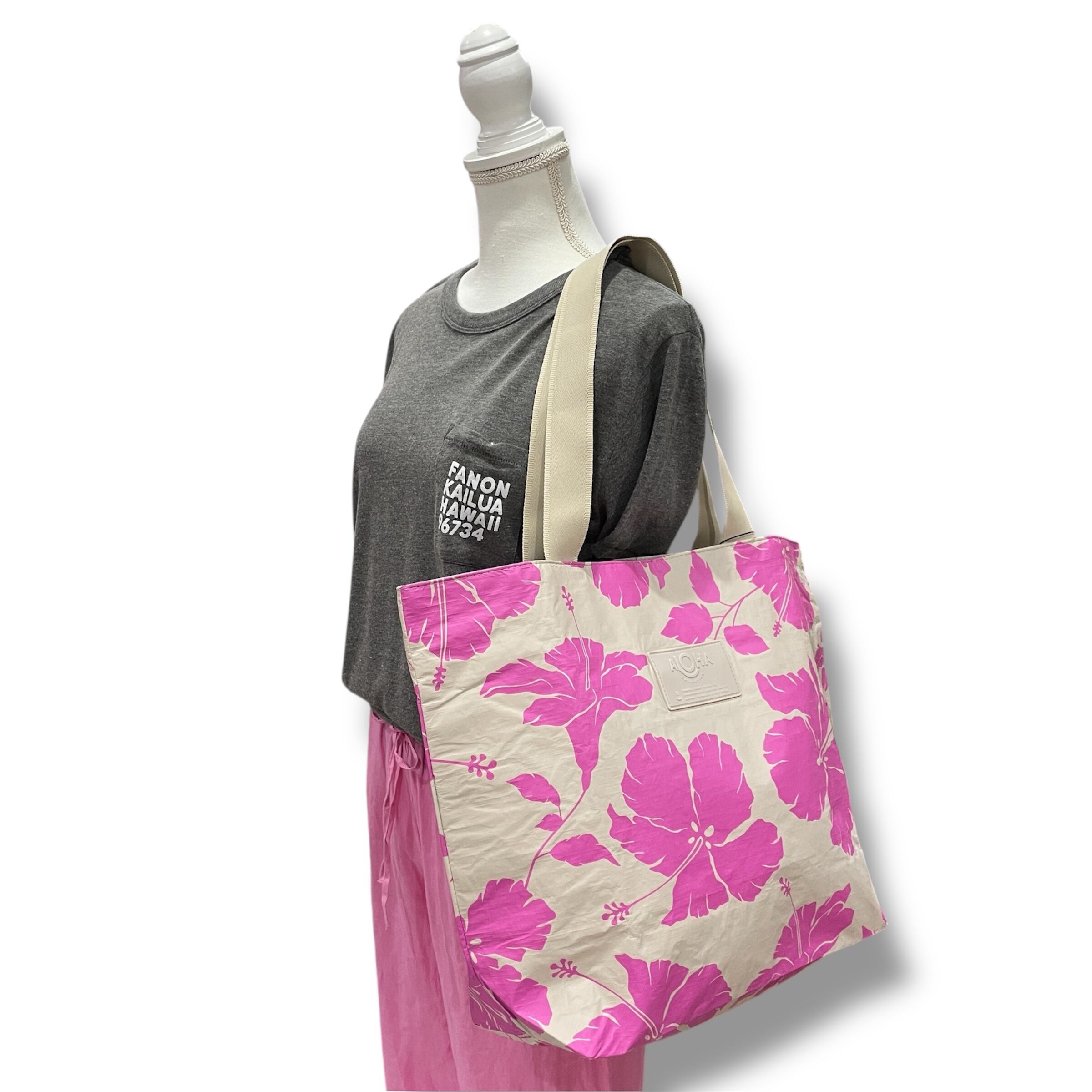【ALOHA COLLECTION】 アロハコレクション トートバッグ DayTripper ファスナー ピンク ベージュ ハイビスカス 花 フラワー ハワイアン ロゴ 海 プール ビーチ 撥水 ハワイ プレゼント