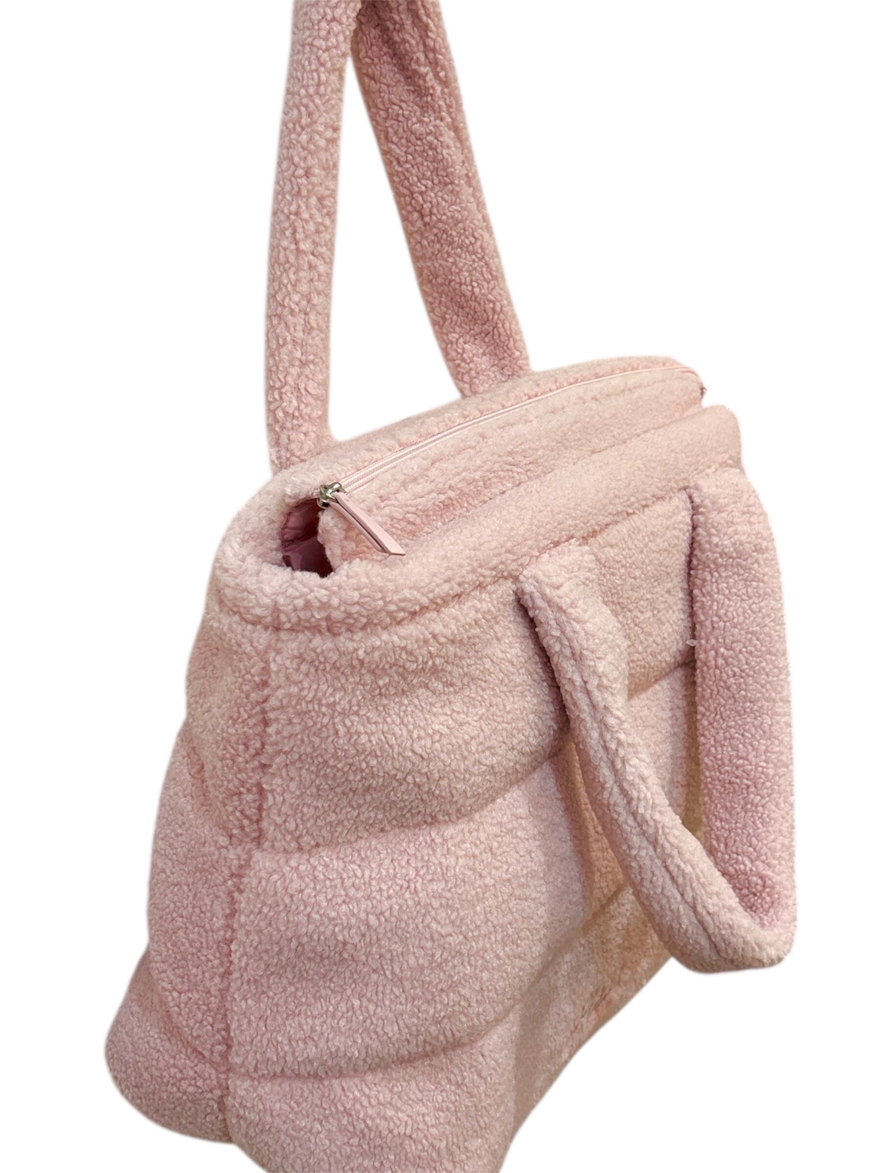 【VICTORIA'S Secret】 ビクトリアシークレット バッグ ショルダーバッグ ピンク フリース ふわふわ モコモコ pink bag fluffy sherpa シェルバ 小旅行 ヨガ ジム おしゃれ ka