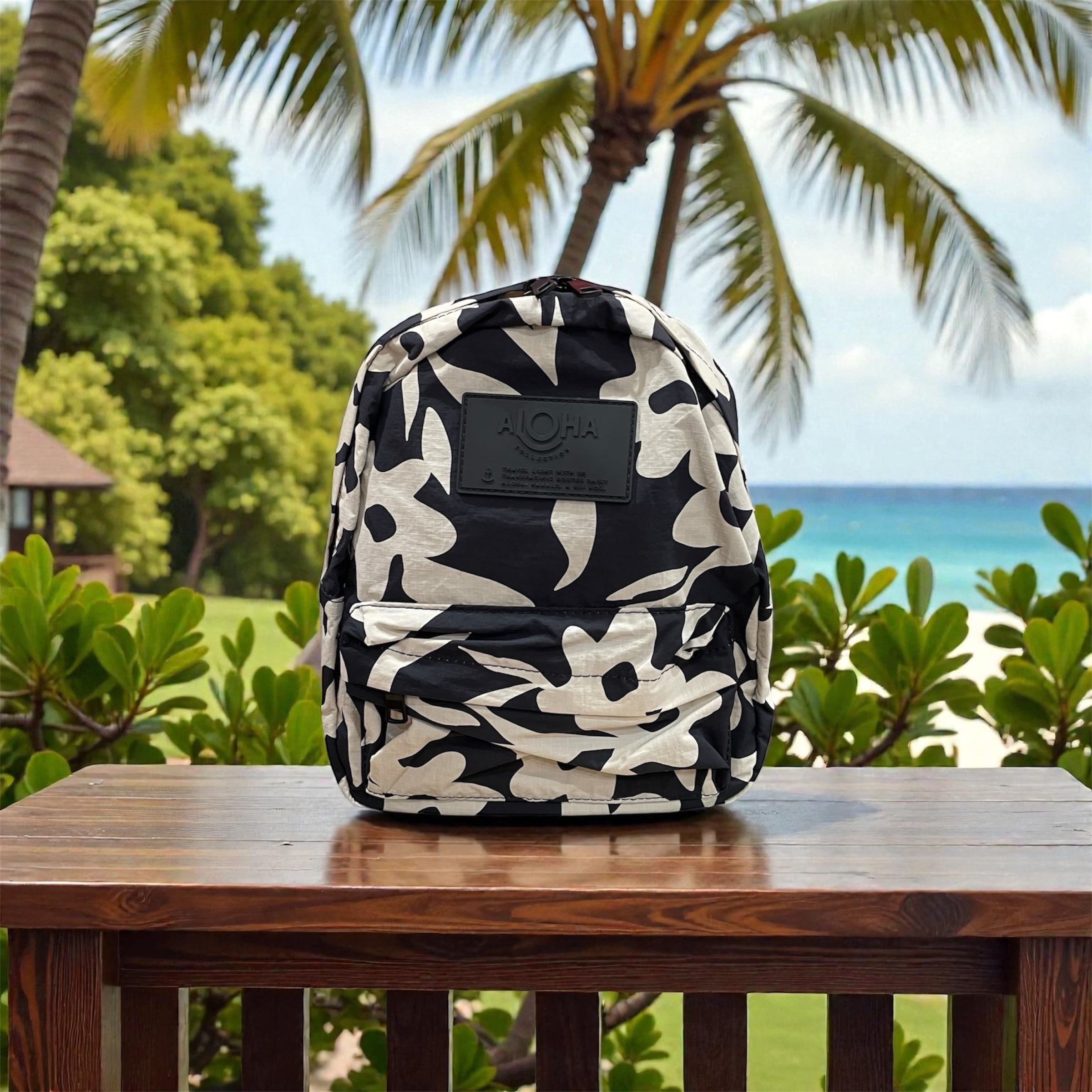 【ALOHA COLLECTION】 アロハコレクション Mini Backpack ミニリュック リュックサック ブラック 黒 ベージュ 花 フラワー ALOHA ロゴ 海 プール ビーチ 撥水 ハワイ プレゼント