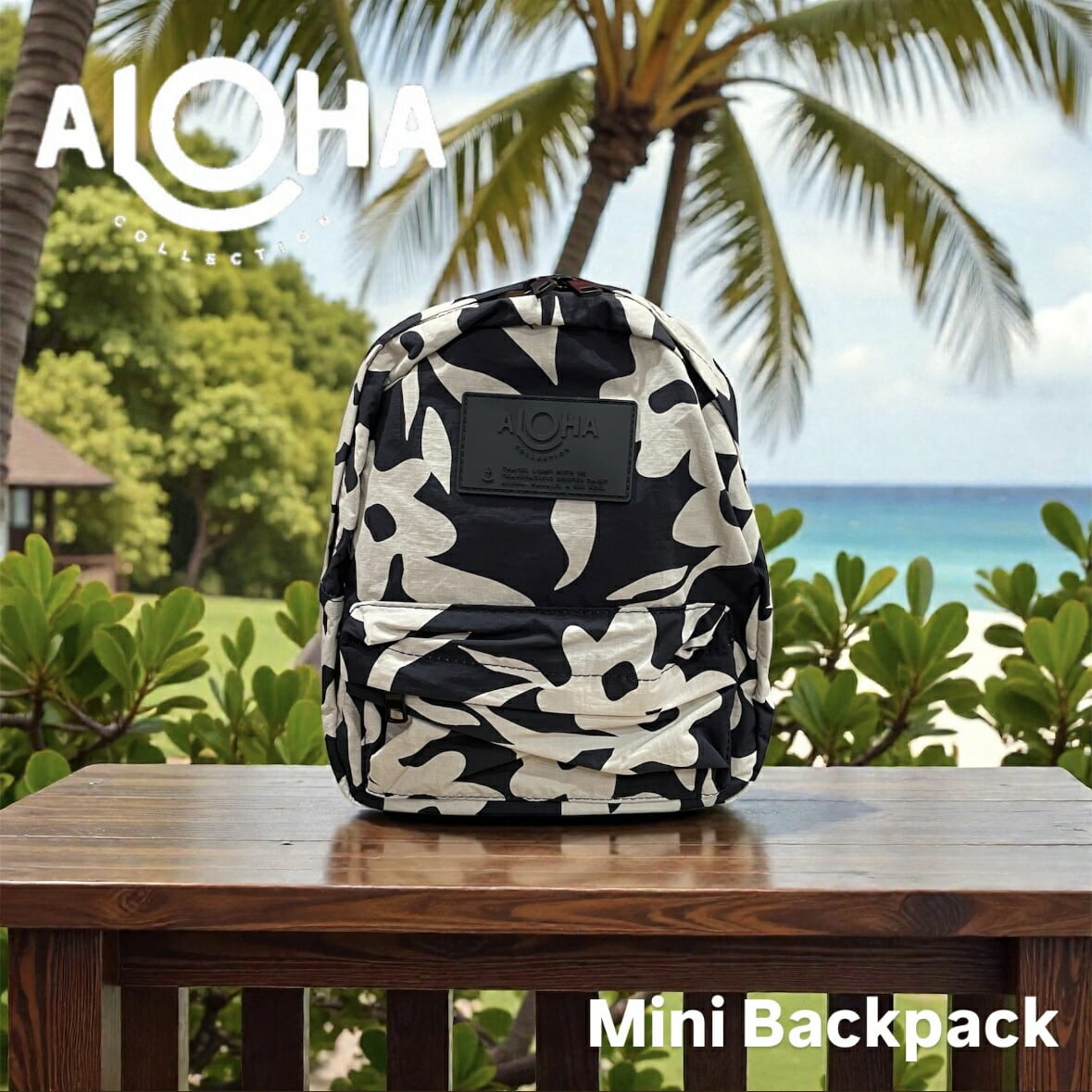 【ALOHA COLLECTION】 ミニリュック ブラック 黒 ベージュ 花 フラワー ALOHA ロゴ 海 プール ビーチ 撥水 リュックサック ハワイ プレゼント 送料無料 神戸三宮 PUA HAWAII