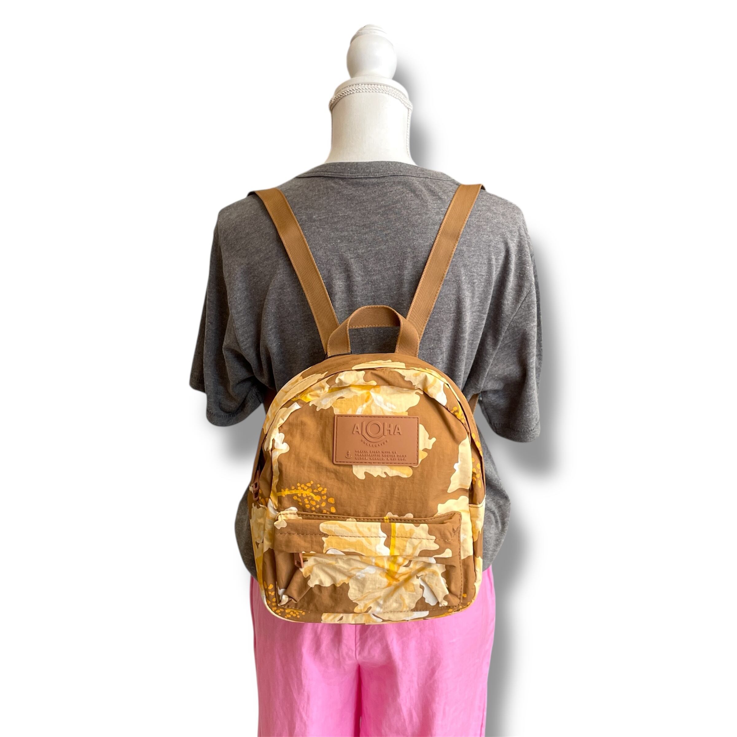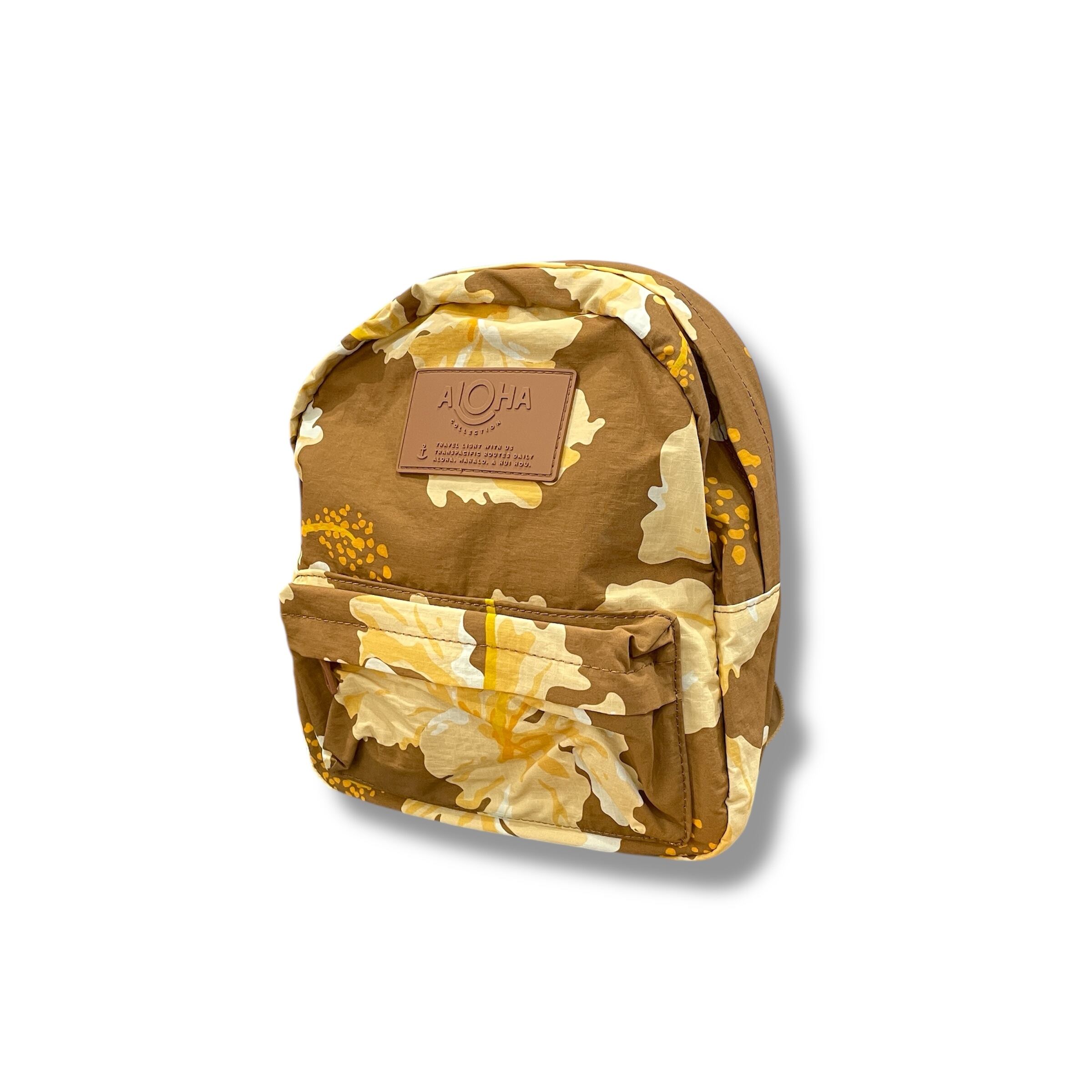 【ALOHA COLLECTION】 アロハコレクション Mini Backpack ミニリュック リュックサック ブラウン イエロー 花 フラワー ALOHA ロゴ 海 プール ビーチ 撥水 ハワイ プレゼント