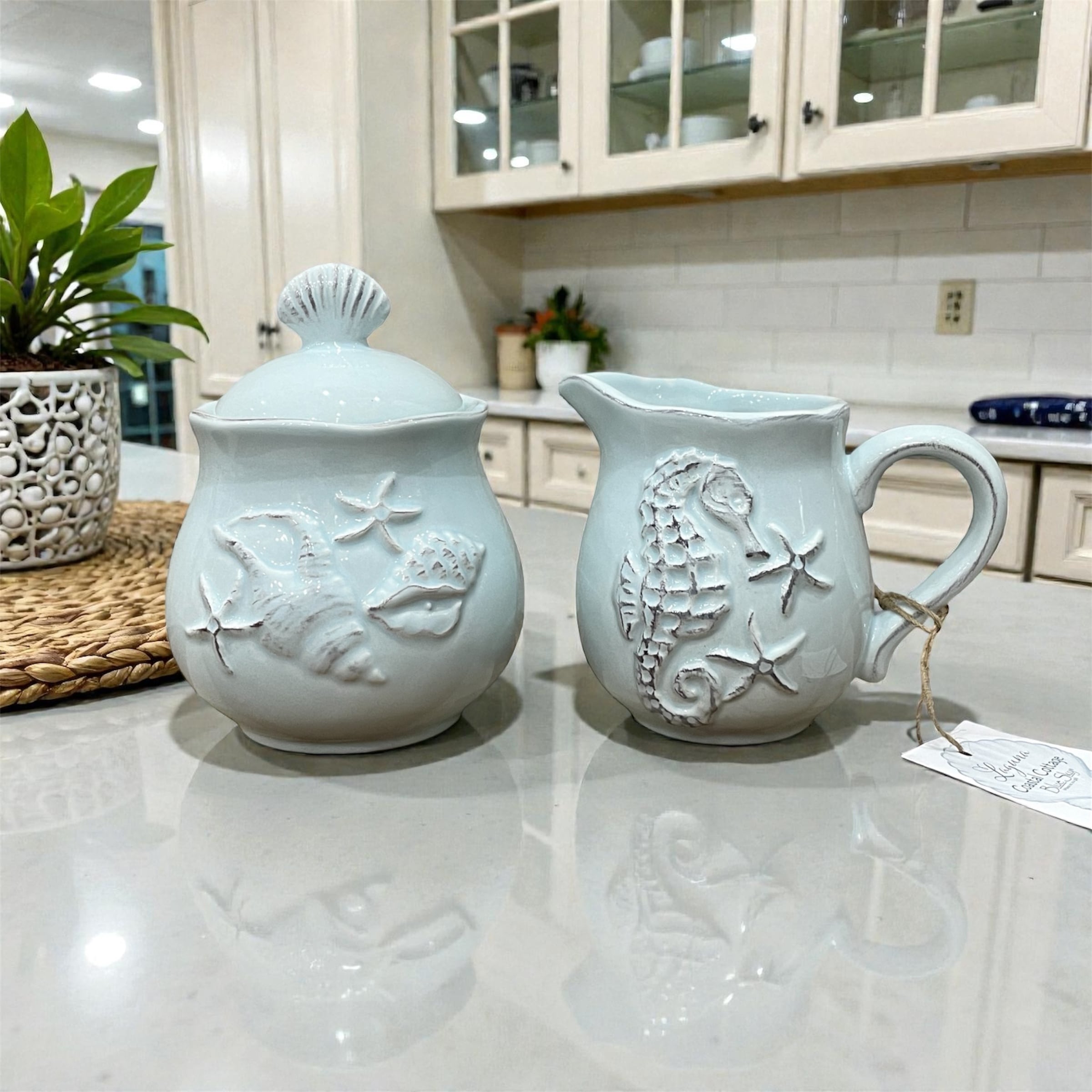 【Laguna Coastal Cottage Blue Sky】 SUGAR AND CREAMER SET シュガーポット ミルクポット 2点セット タツノオトシゴ 海 貝 ギフト プレゼント 贈り物 キッチン インテリア 海外輸入 海外品