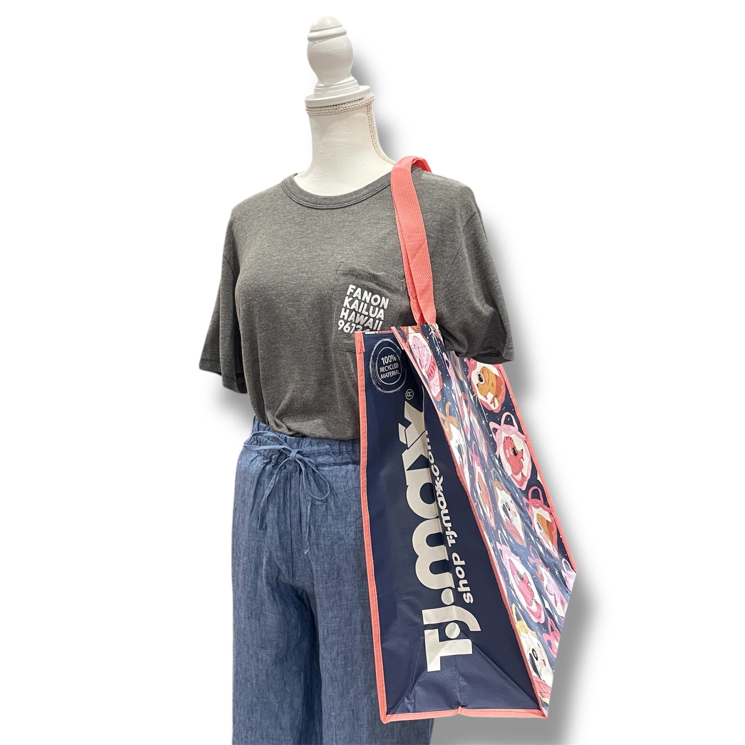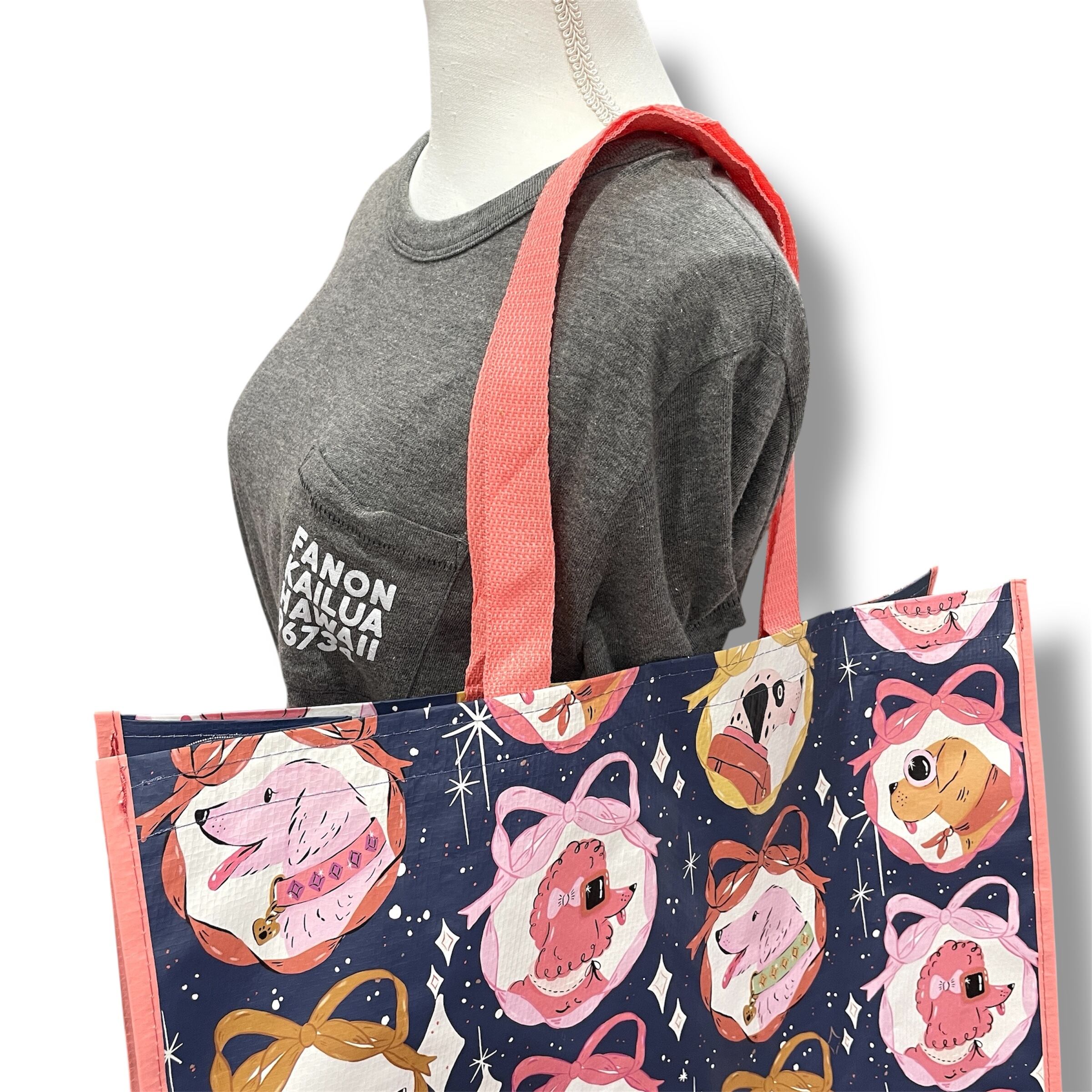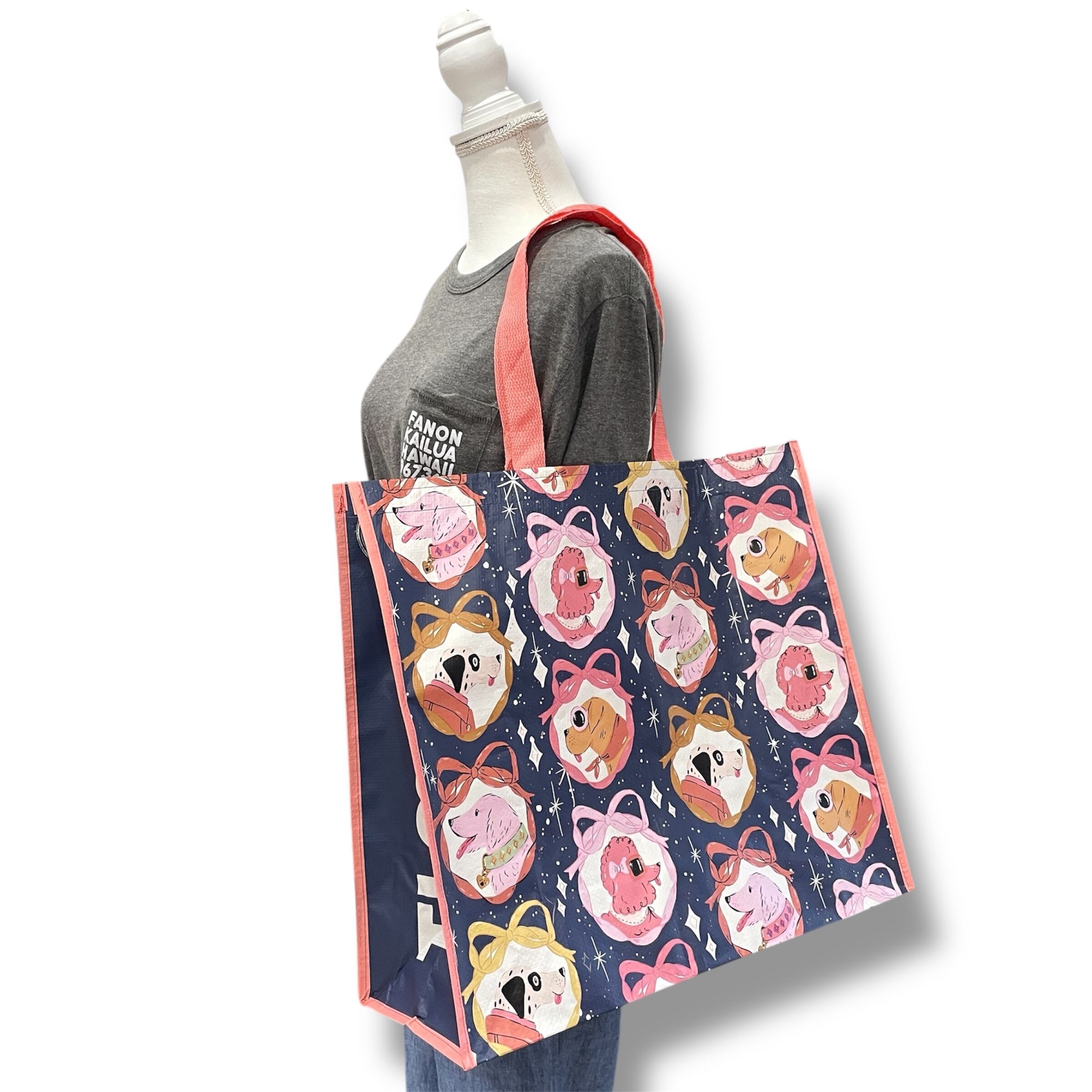【エコバッグ】ポリプロピレン ネイビー ピンク イヌ ドッグ イラスト エコトートバッグ ショッピングバッグ マチあり ハワイ HAWAII ハワイ入荷 海外輸入 プレゼント