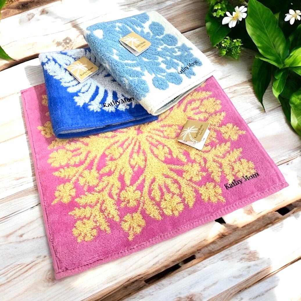 ハワイを代表する植物や、お花がデザインされた色鮮やかな肌触りの良いタオルです。