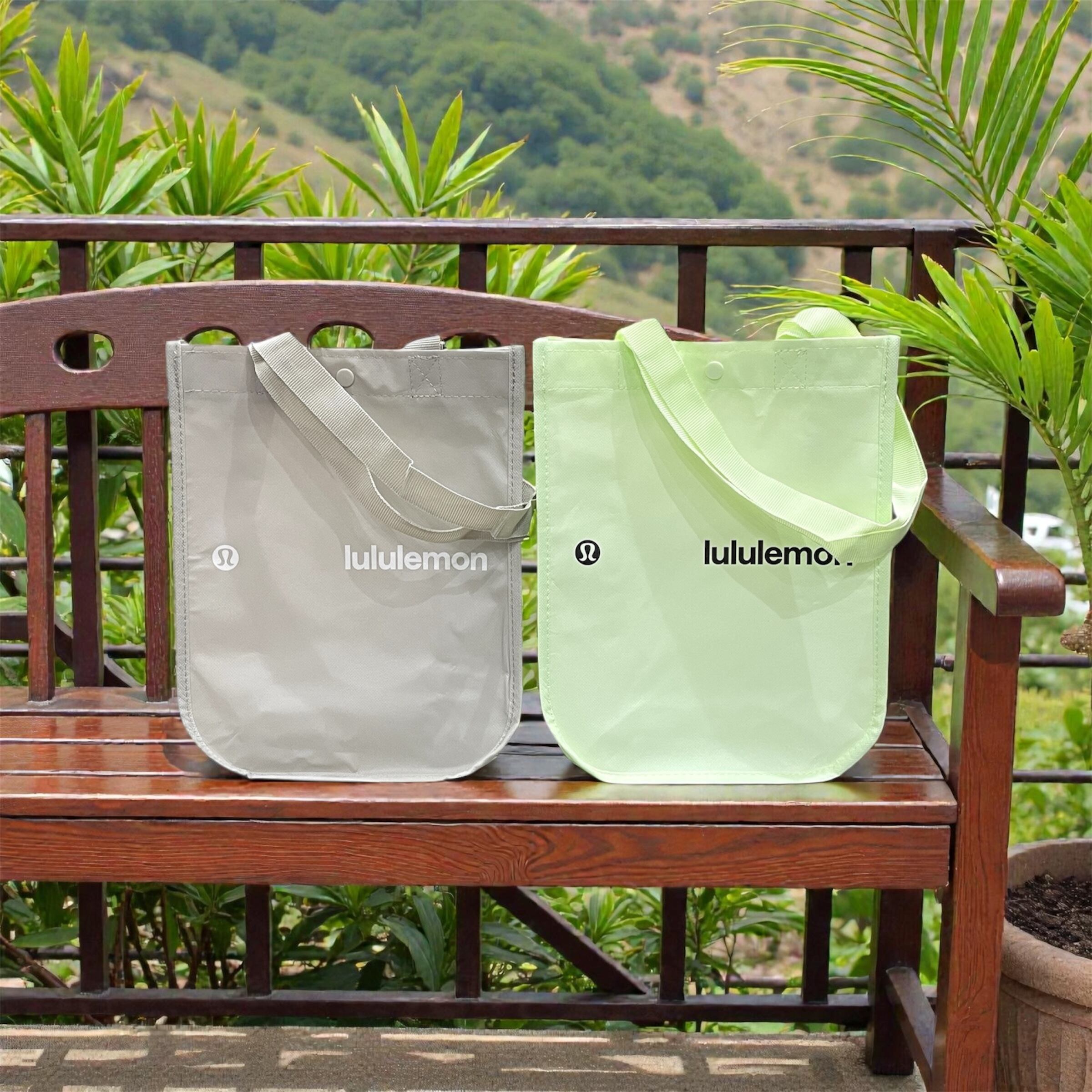 【lululemon】ルルレモン 最新 ミニサイズ エコバック グレー ライトグリーン 黄緑 ロゴ マチ付き トレーニング ヨガ ショッピングバッグ 軽量 海外輸入 ハワイ 海外品 プレゼント ギフト