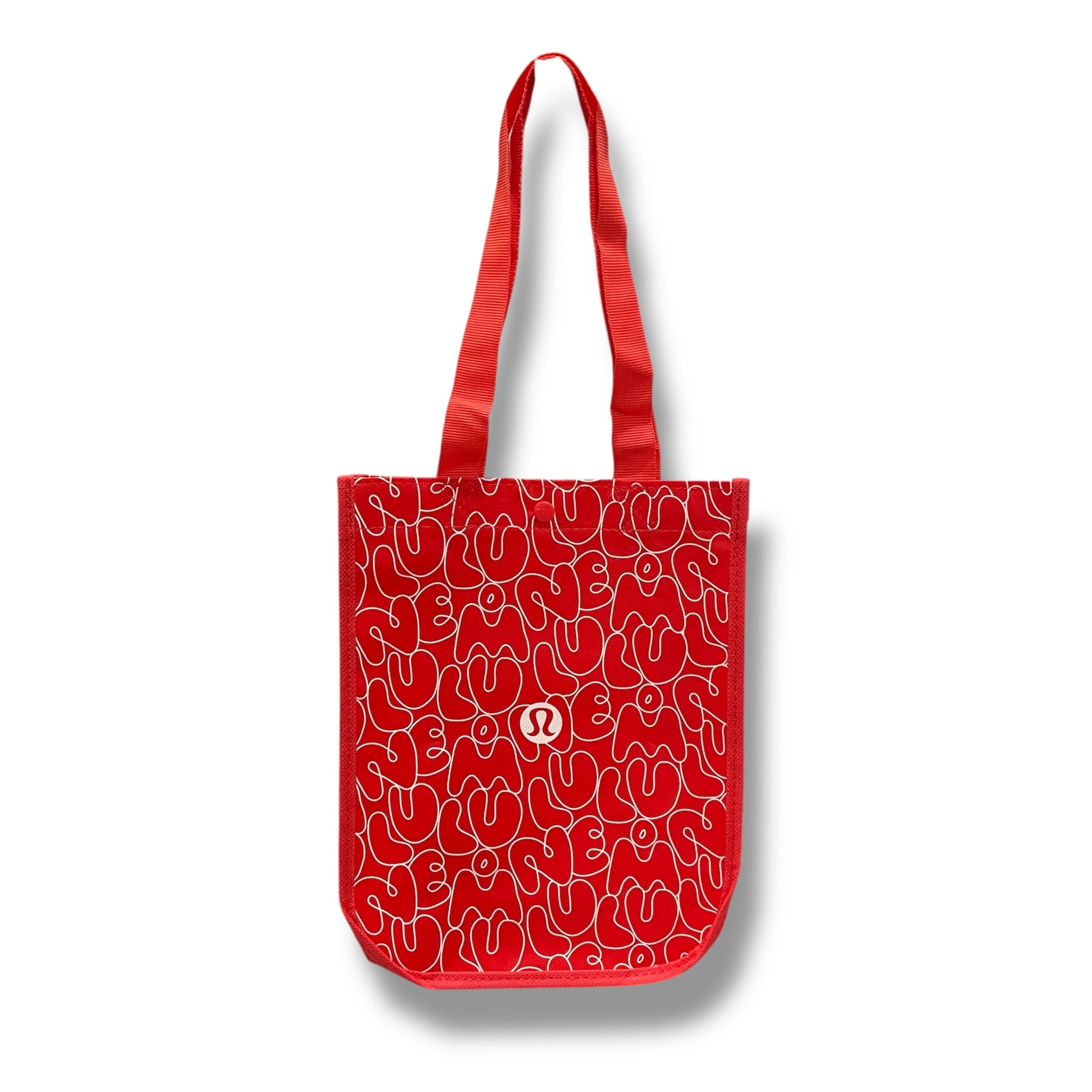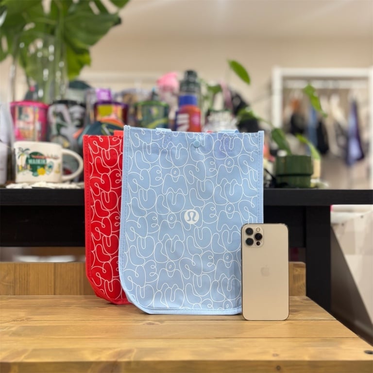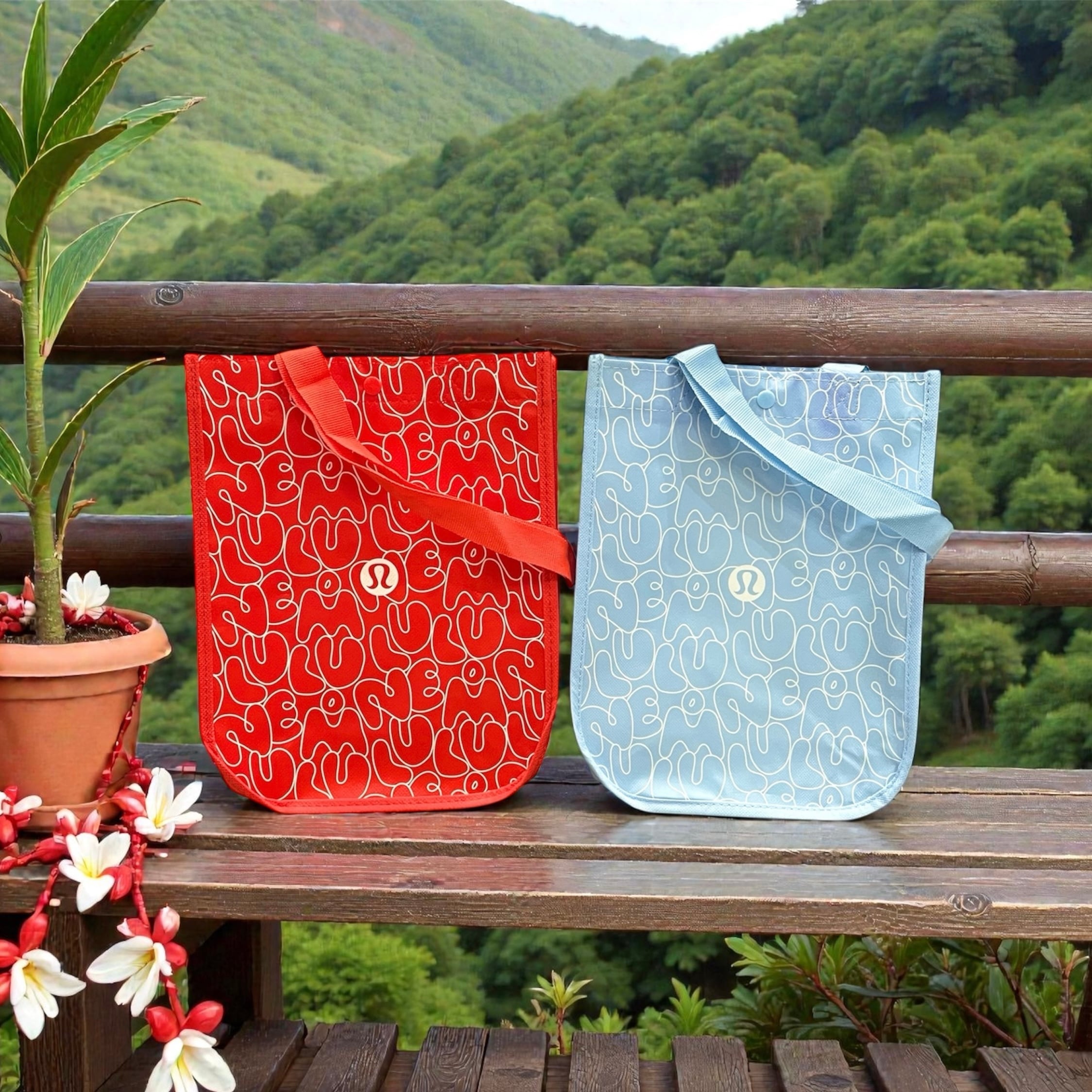 【lululemon】ルルレモン 最新 ミニサイズ エコバック レッド ブルー 水色 ロゴ マチ付き トレーニング ヨガ ショッピングバッグ 軽量 海外輸入 ハワイ 海外品 プレゼント ギフト