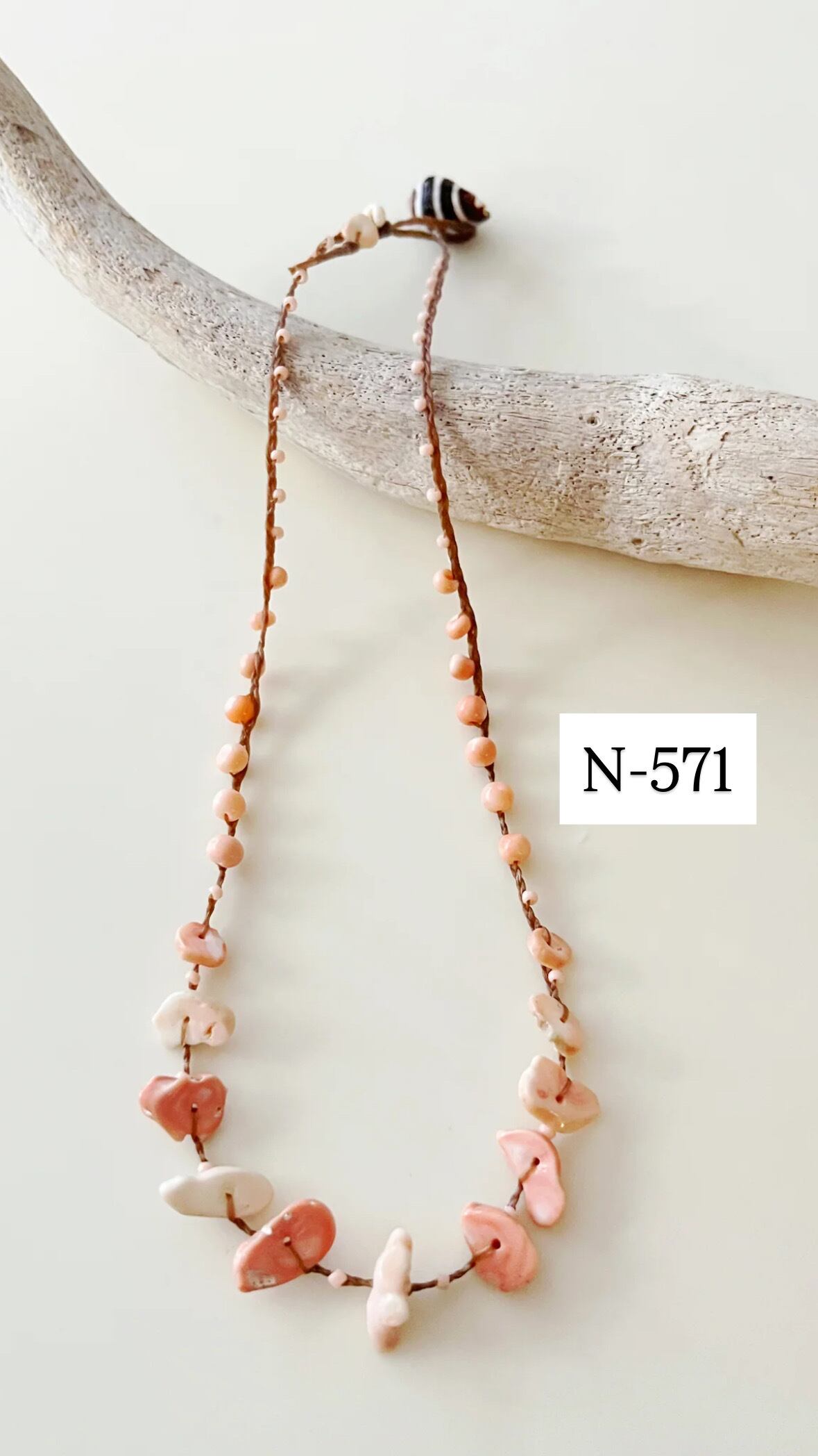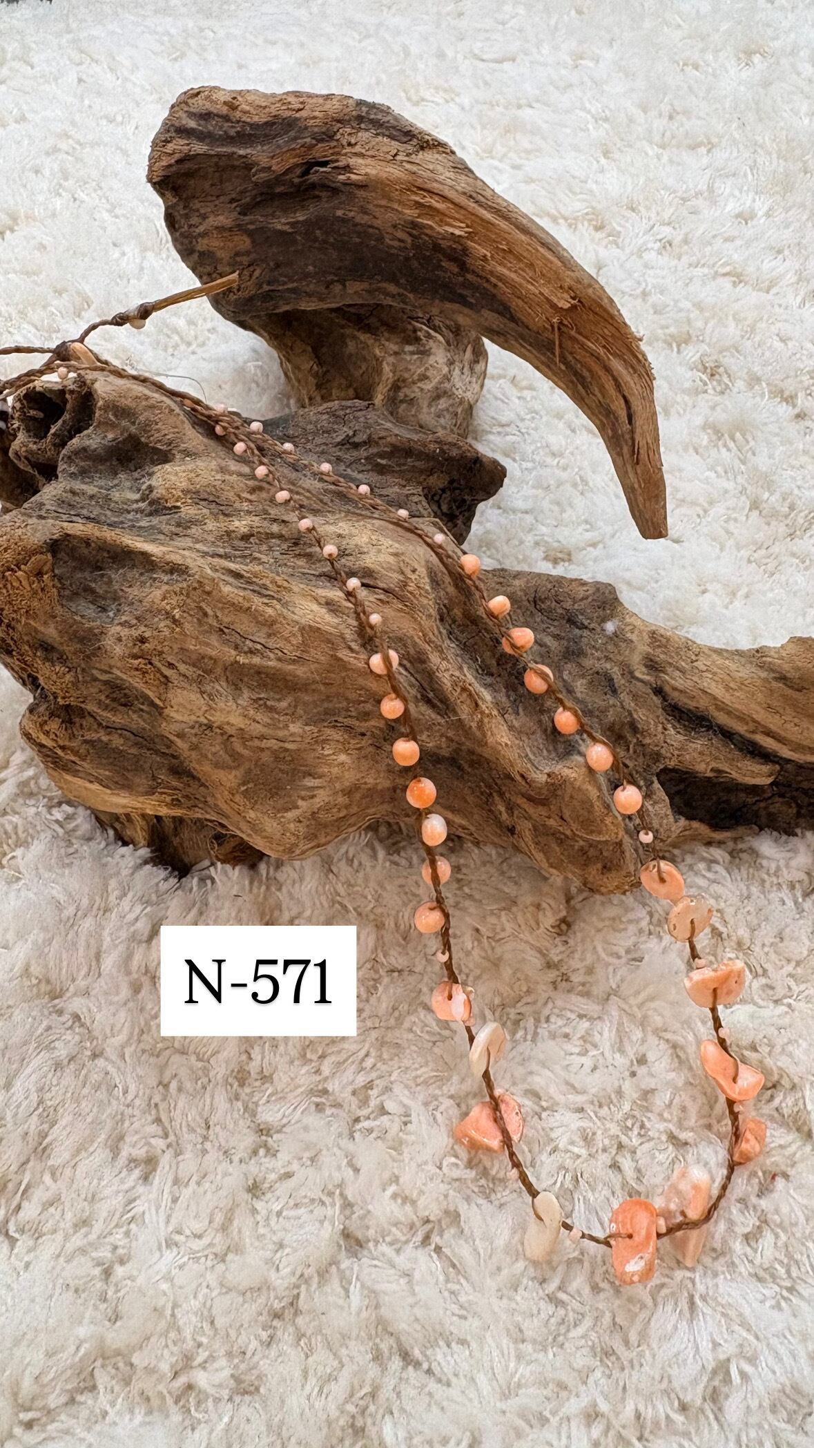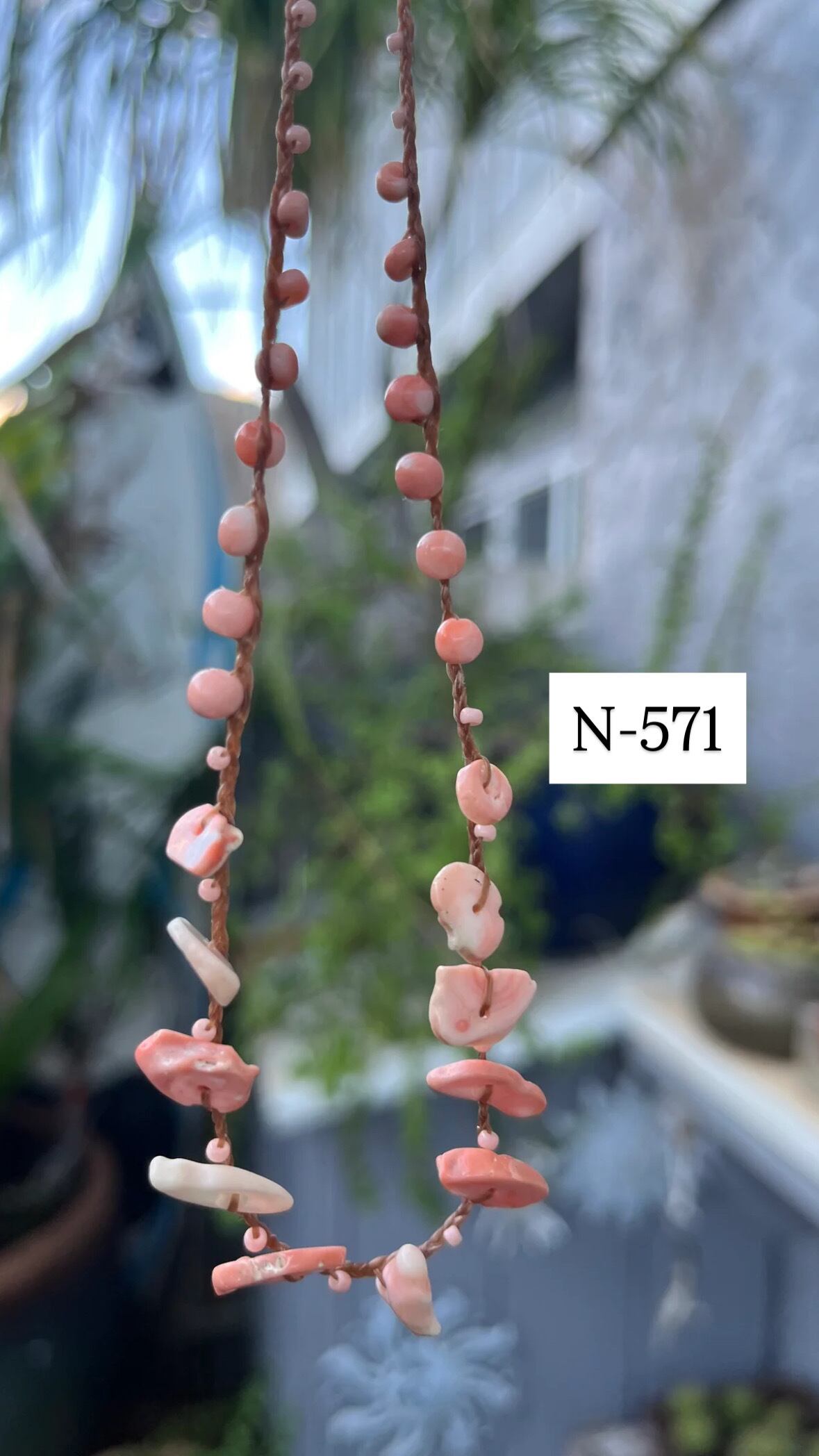 素材:ナチュラルエンジェルスキン コーラル・ナチュラルビンテージコーラル・シードビーズ・シニュー人口ワックスコード