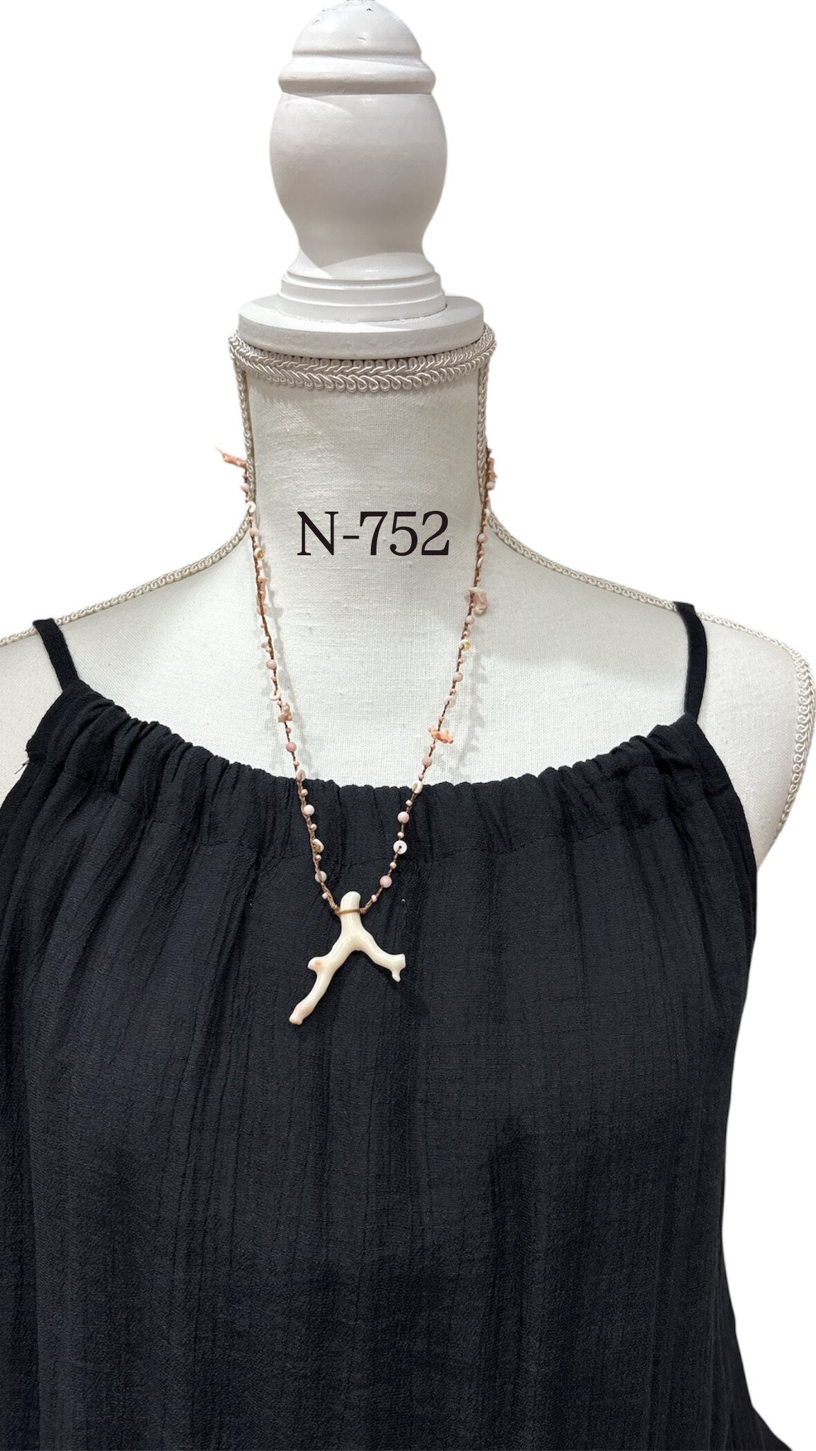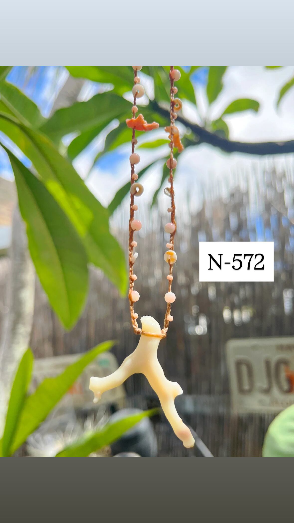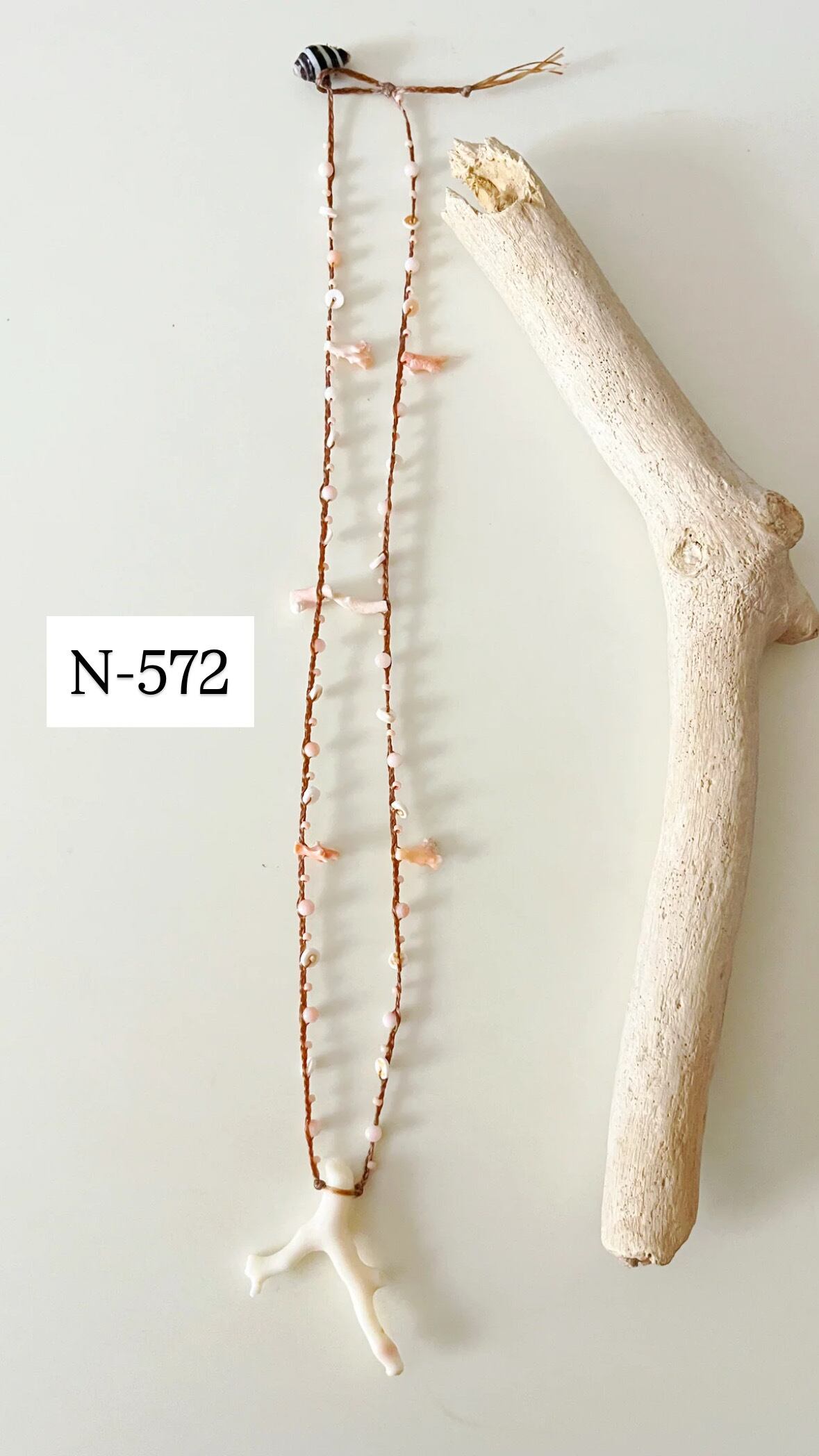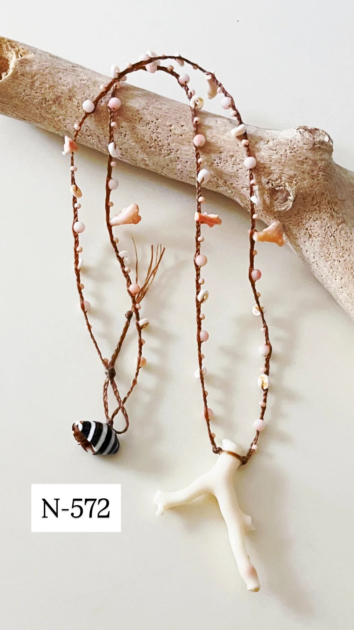 素材:ビンテージナチュラルコーラル・シードビーズ・プカシェル・ゼブラシェル・シニュー人口ワックスコード