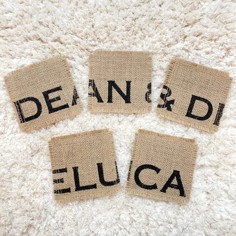 5枚組で、それぞれに文字が印刷されており、繋げると「DEAN&DELUCA」のロゴが完成します♪