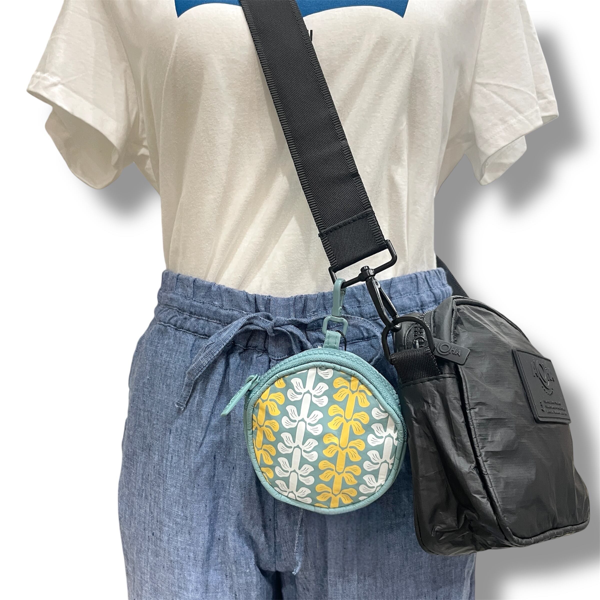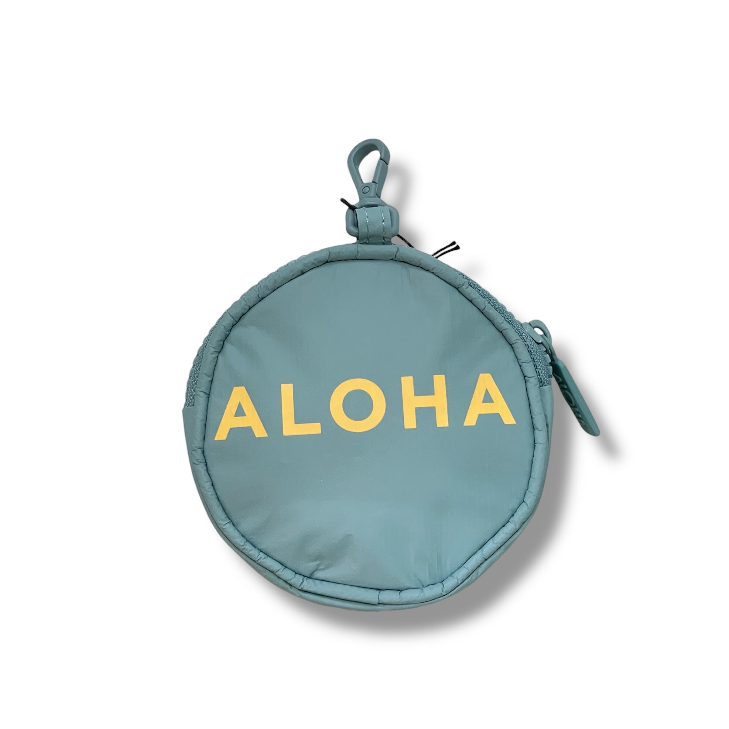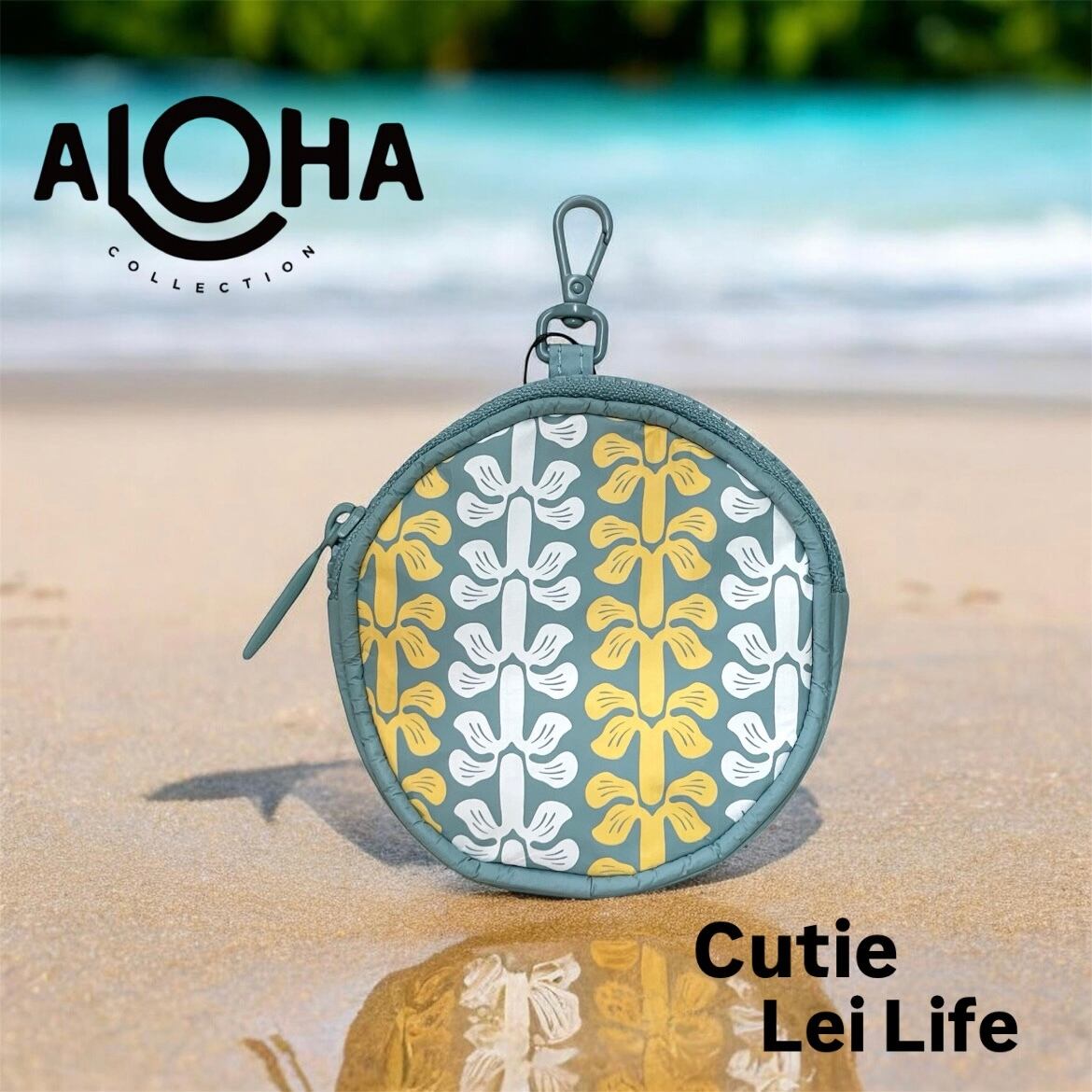 【ALOHA COLLECTION】 Lei Life Cutie ラウンド型 ポーチ ブルー イエロー ホワイト レイ レイ柄 小物ケース ハワイ限定 海 プール ビーチ 撥水 ハワイ プレゼント 小銭入れ イヤホンケース 送料無料