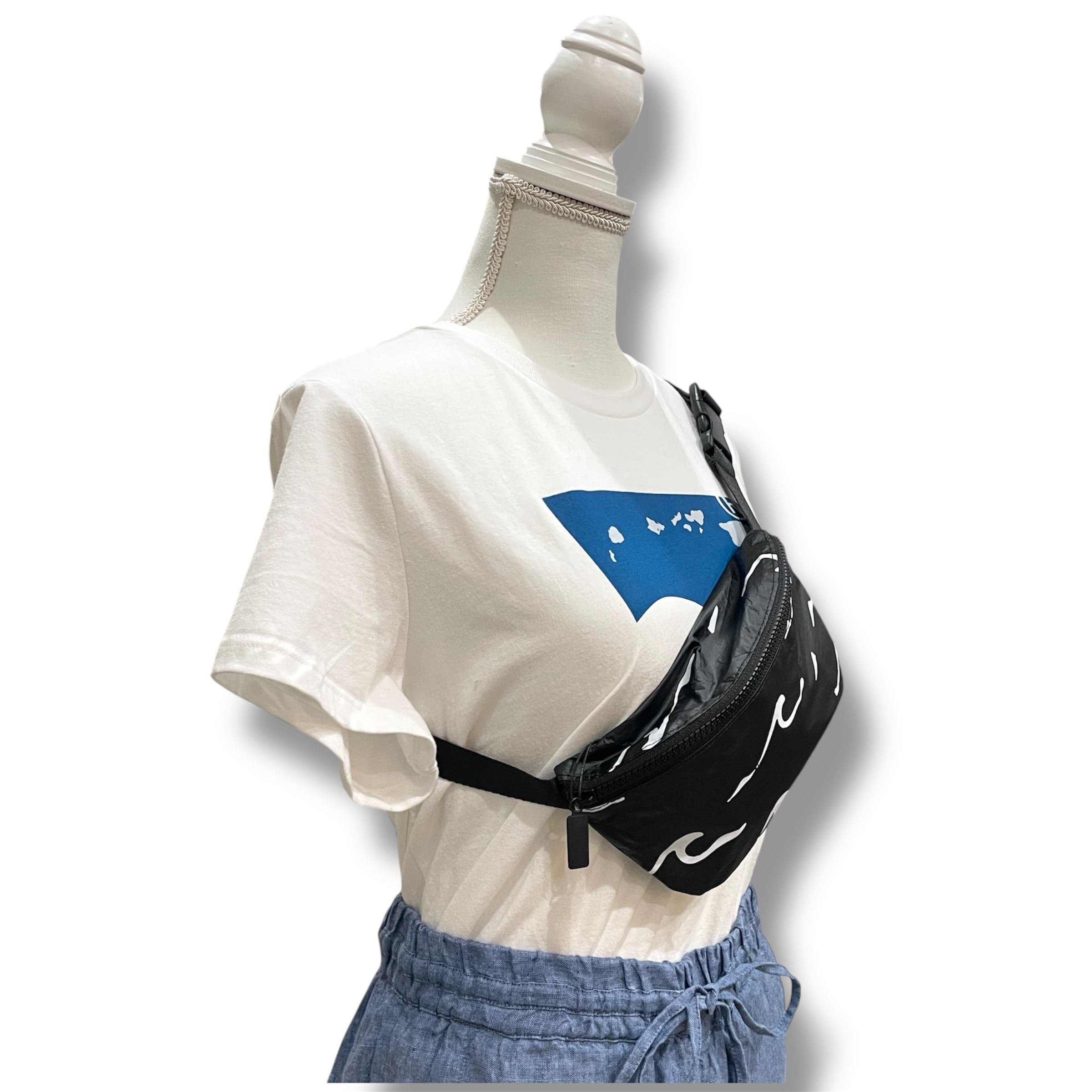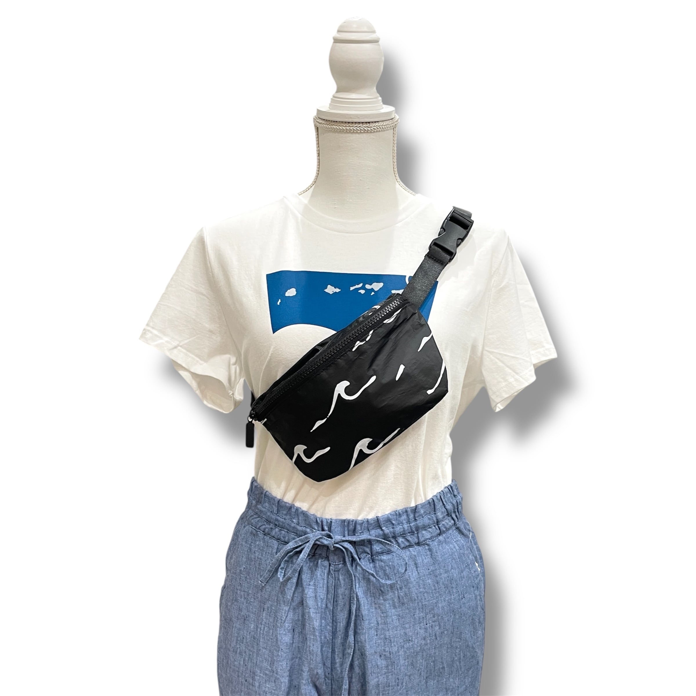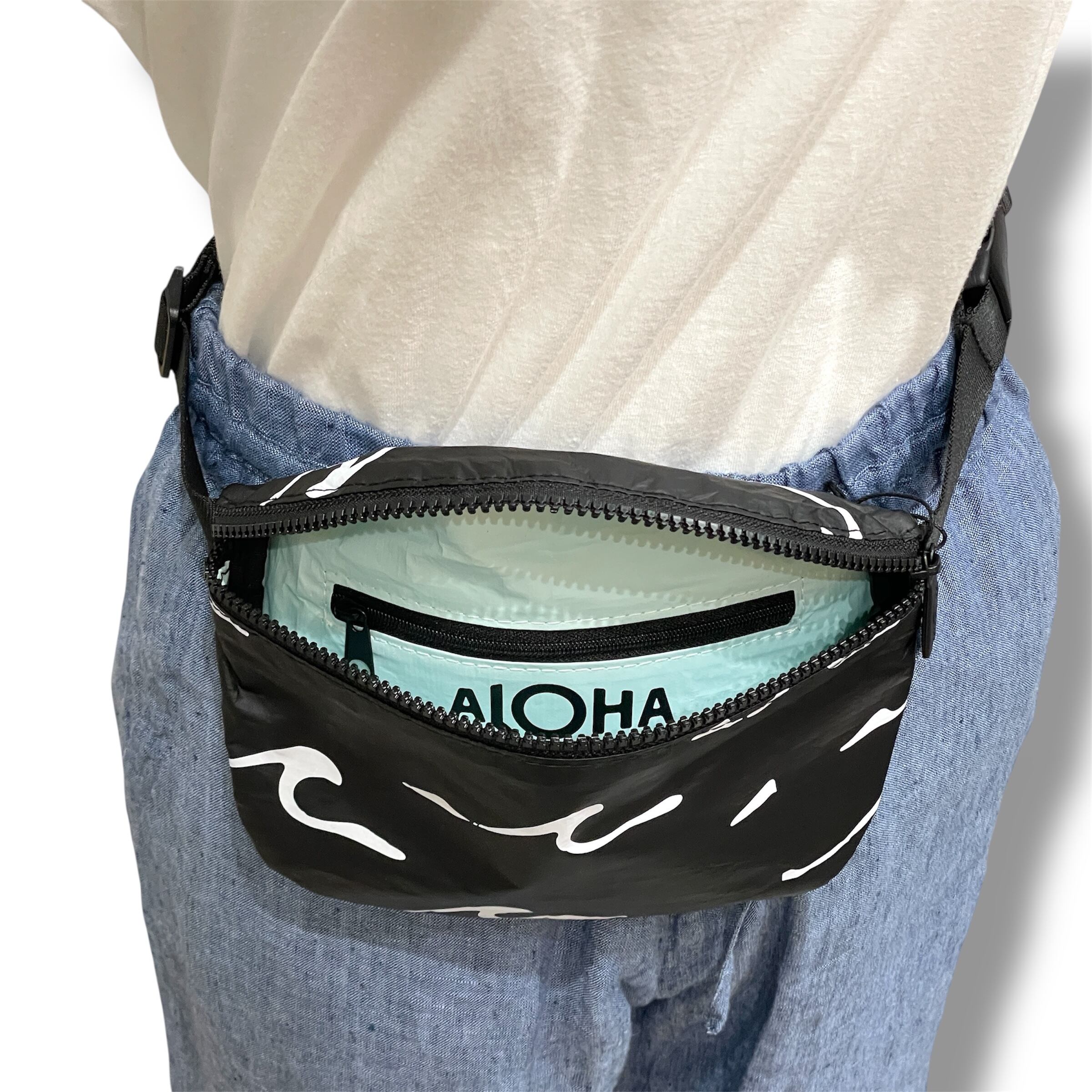 【ALOHA COLLECTION】 アロハコレクション Seaside Mini Hip Pack White/Black ホワイト ブラック 水色 波 ロゴ ウエストバッグ ボディバッグ 2way 軽量 メンズ レディース ユニセックス アウトドア スポーツ ハワイ ハワイアン お出かけ プレゼント