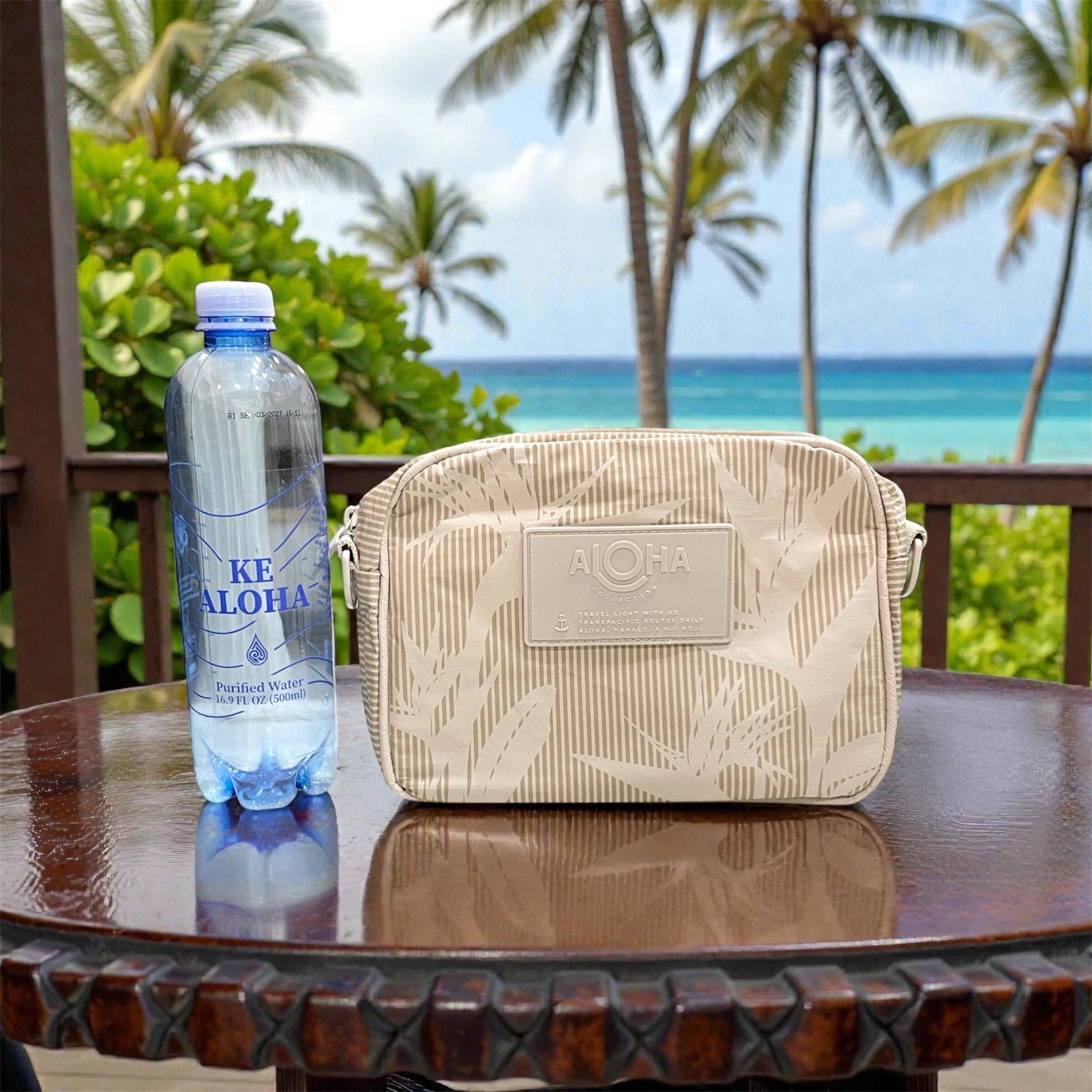 【ALOHA COLLECTION】 Le Tour paradise tiny stripe ショルダーバッグ 肩がけ ベージュ ストライプ 撥水 splashproof 防滴 ハワイ限定 軽量 アウトドア スポーツ お出かけ プレゼント 送料無料 神戸三宮 PUA HAWAII