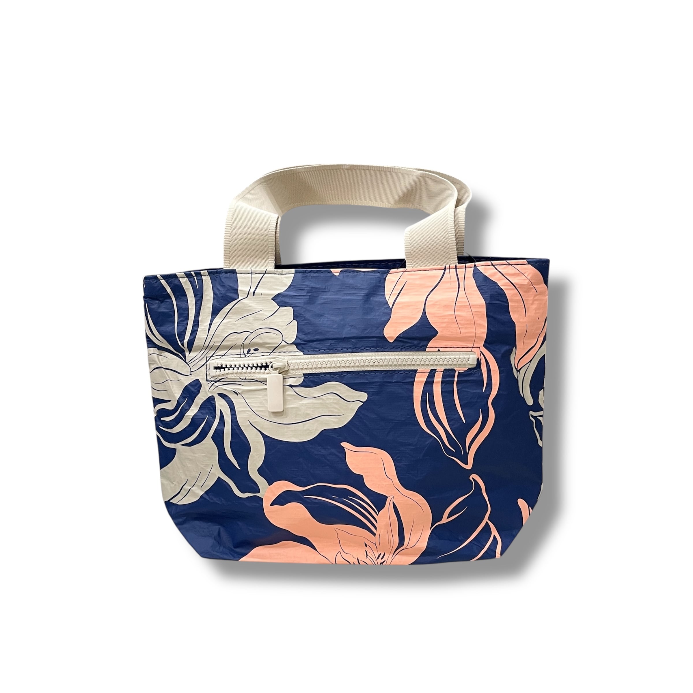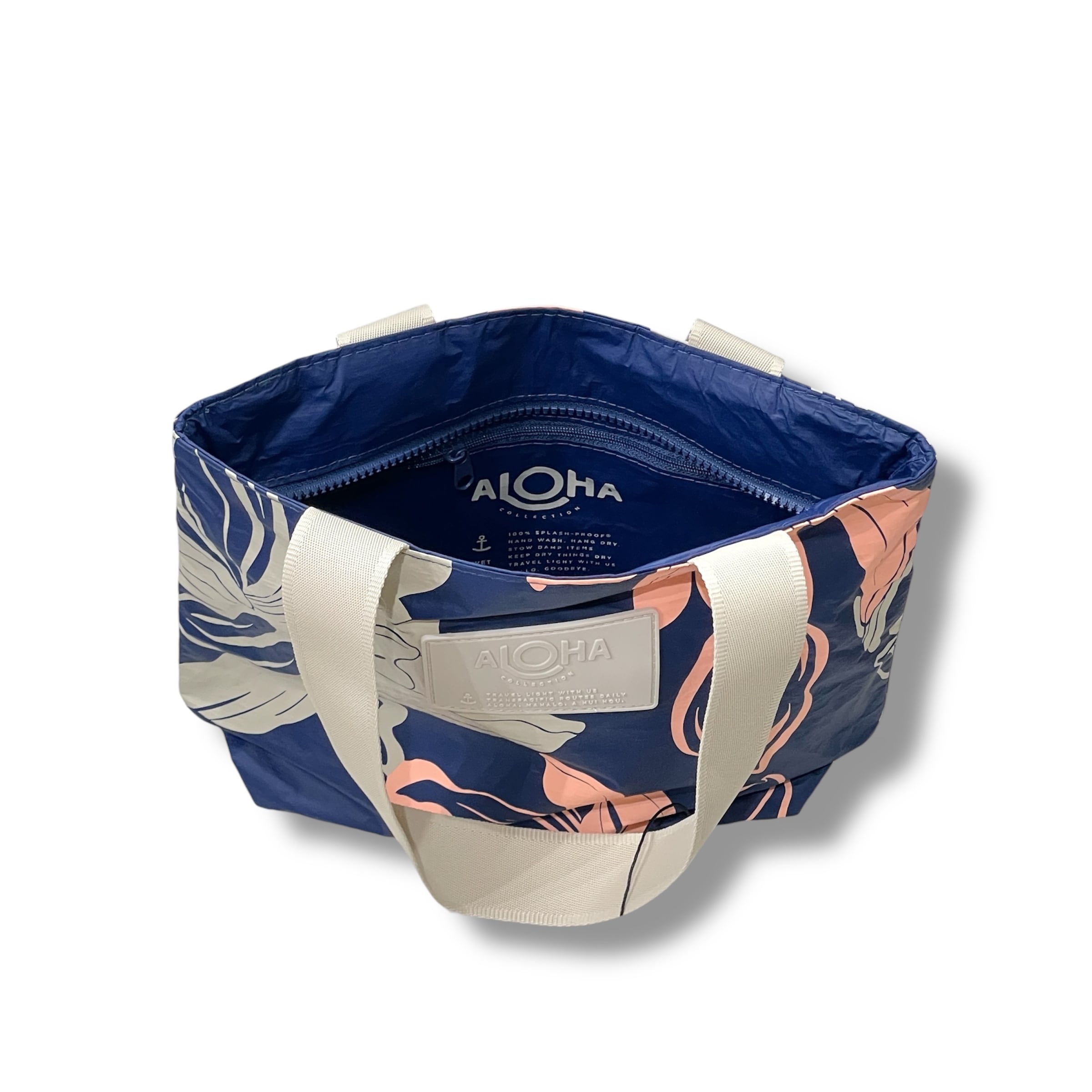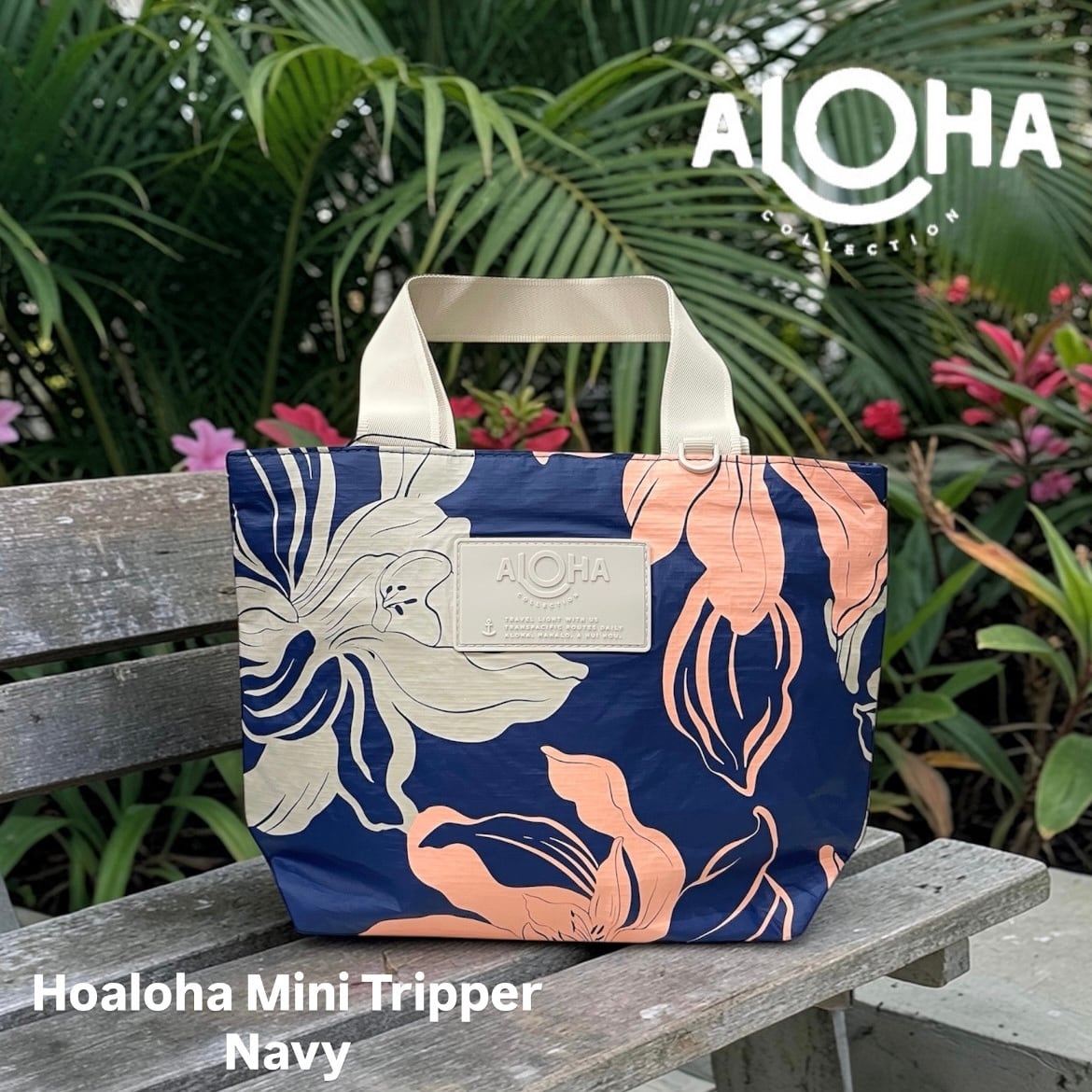 【ALOHA COLLECTION】 Hoaloha Mini Tripper Navy トートバッグ ミニトリッパー ミニトート ファスナー ハイビスカス ネイビー ベージュ ピンク 花 フラワー ハワイアン ロゴ 海 プール ビーチ 撥水 ハワイ プレゼント 送料無料 神戸三宮 PUA HAWAII