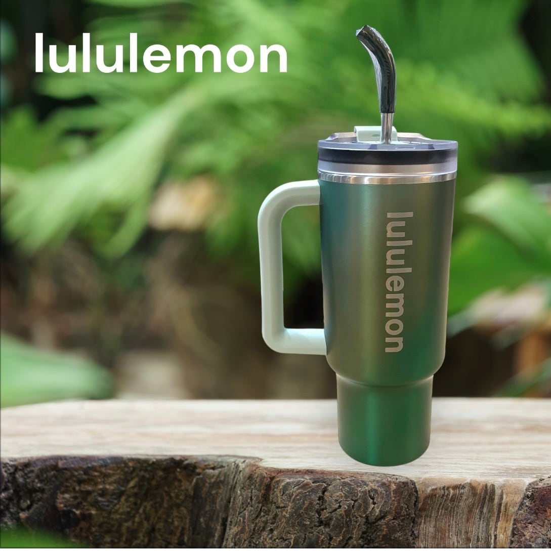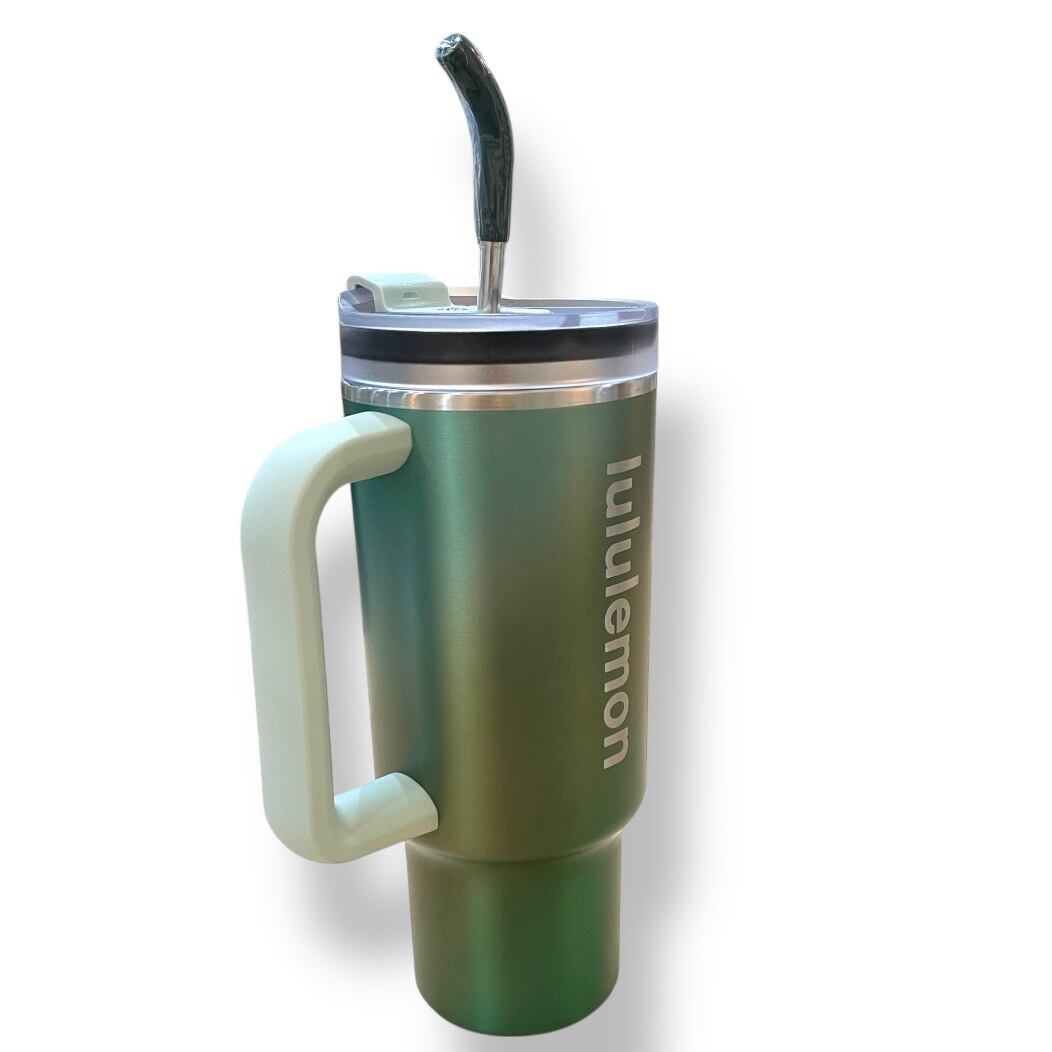 【lululemon】ルルレモン 水筒 1.2l 大容量 スポーツボトル Green silver グリーン シルバー メタリック 蓋つき水筒 タンブラー ステンレススチールストロー スクリュートップ insulated tumbler 40oz ハワイ HAWAII ギフト プレゼント 【送料無料】 mu